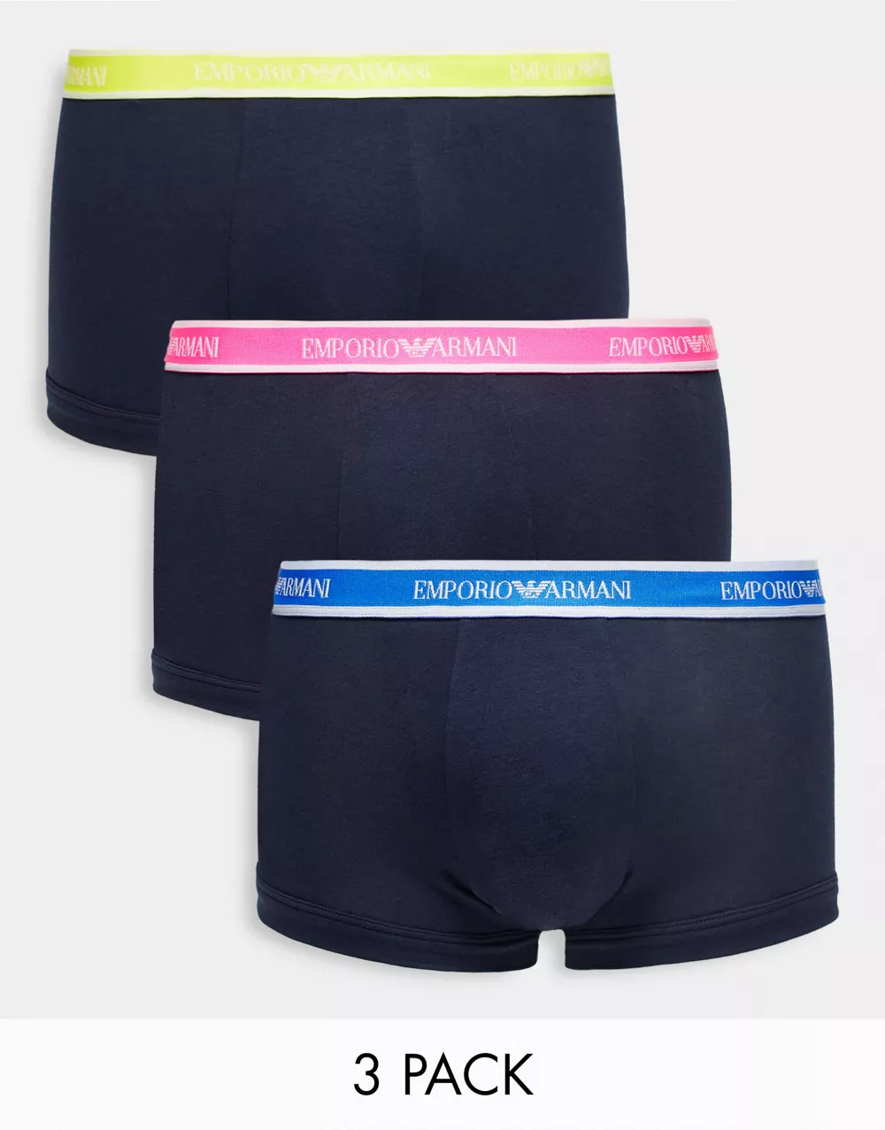 - Emporio Armani 3 pack trunk with colour waistband in black