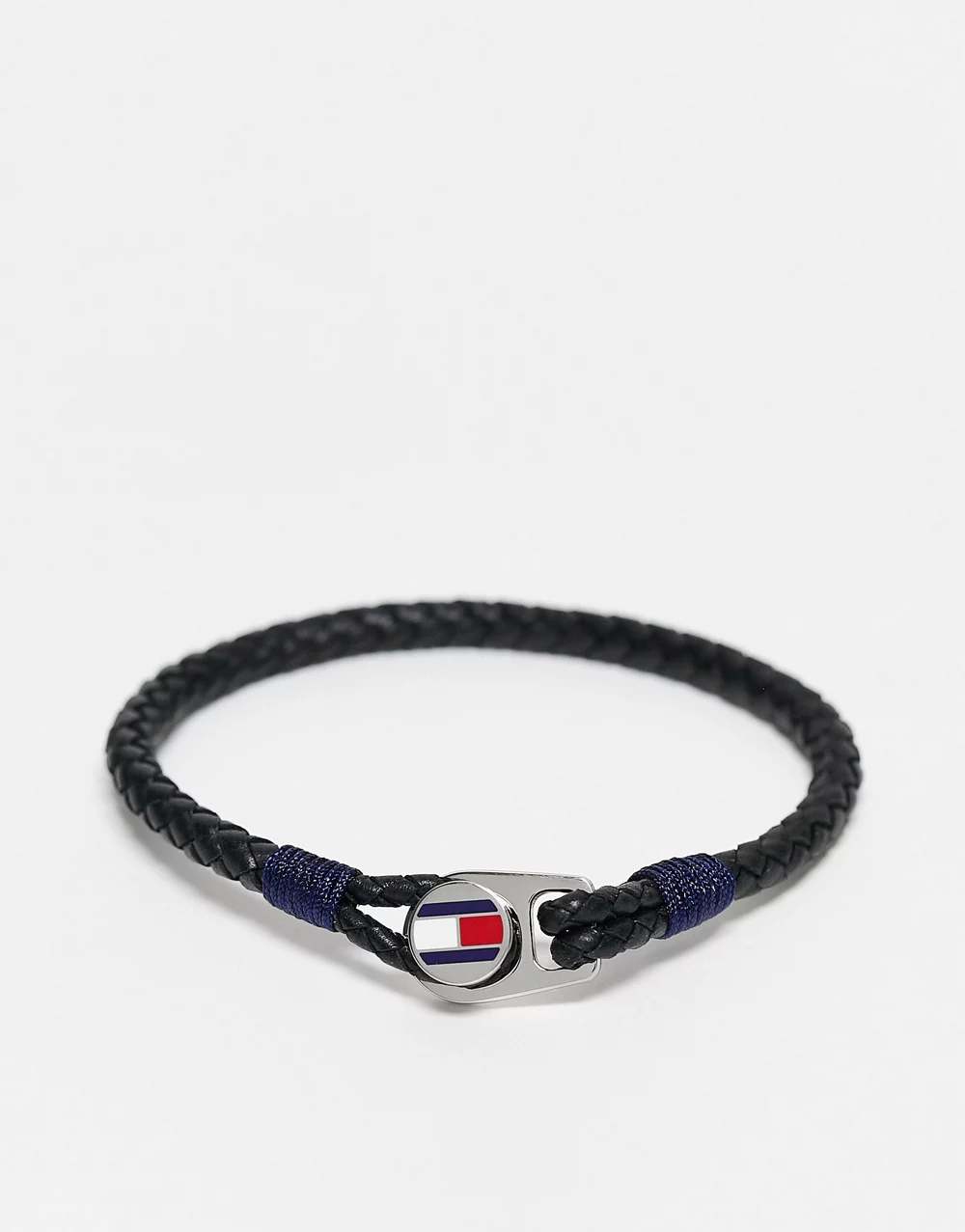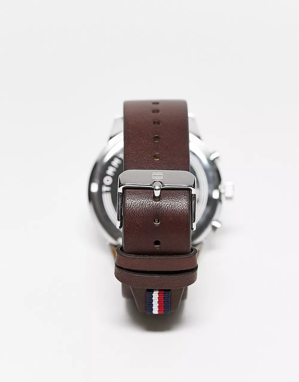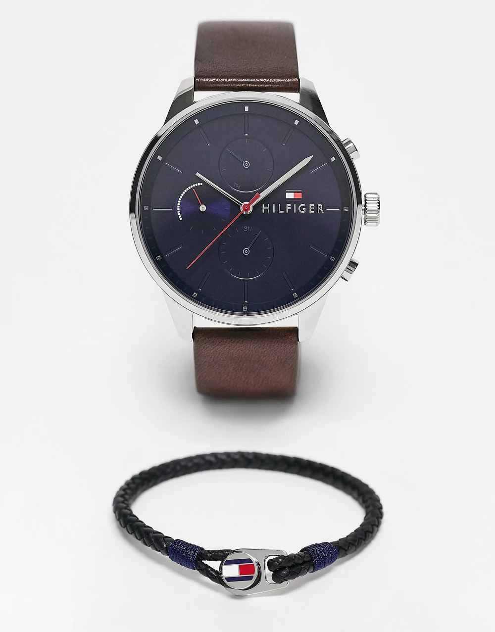 - Tommy Hilfiger mens leather watch and braided bracelet gift set in brown