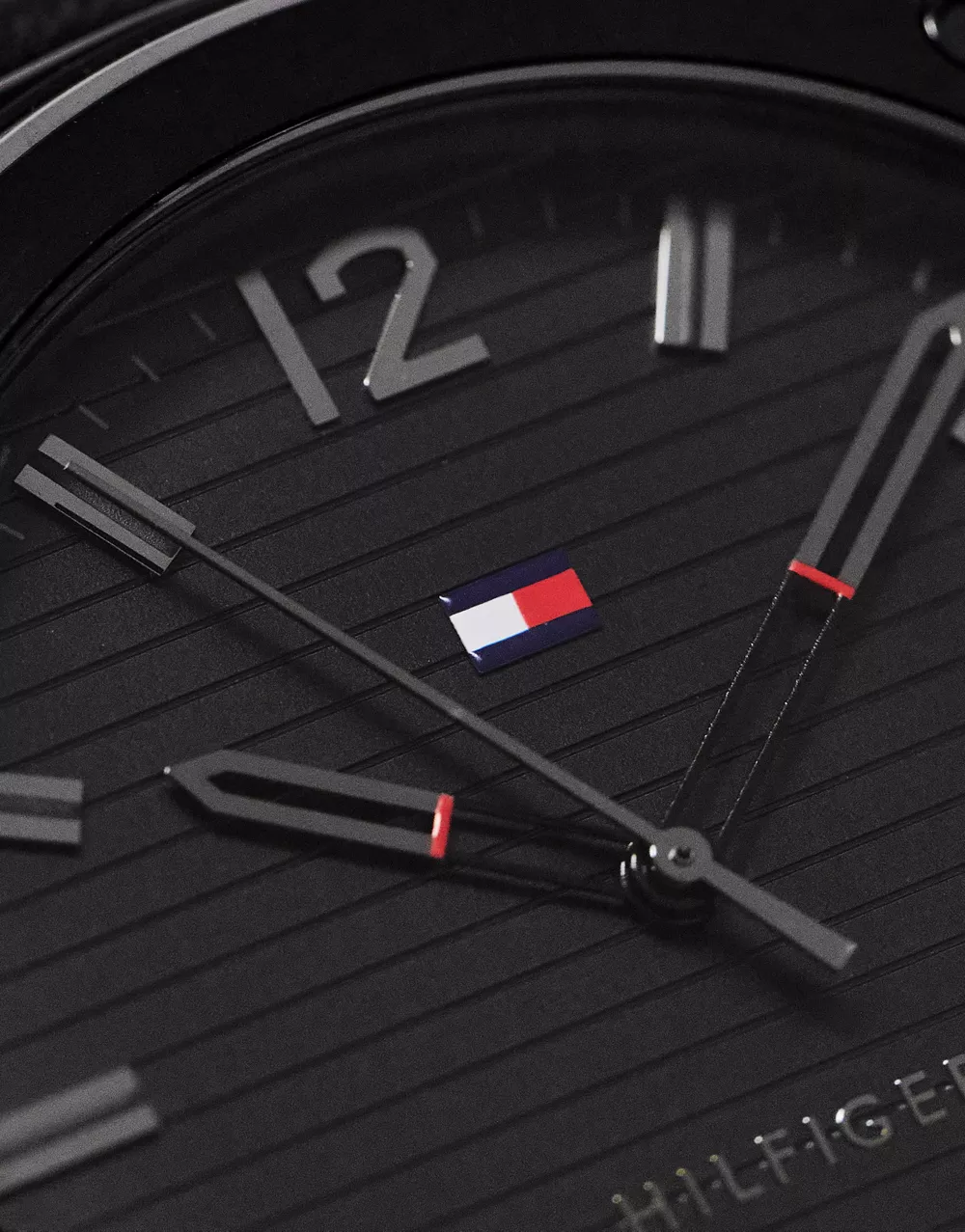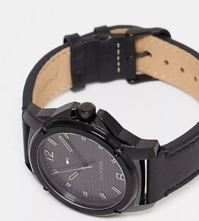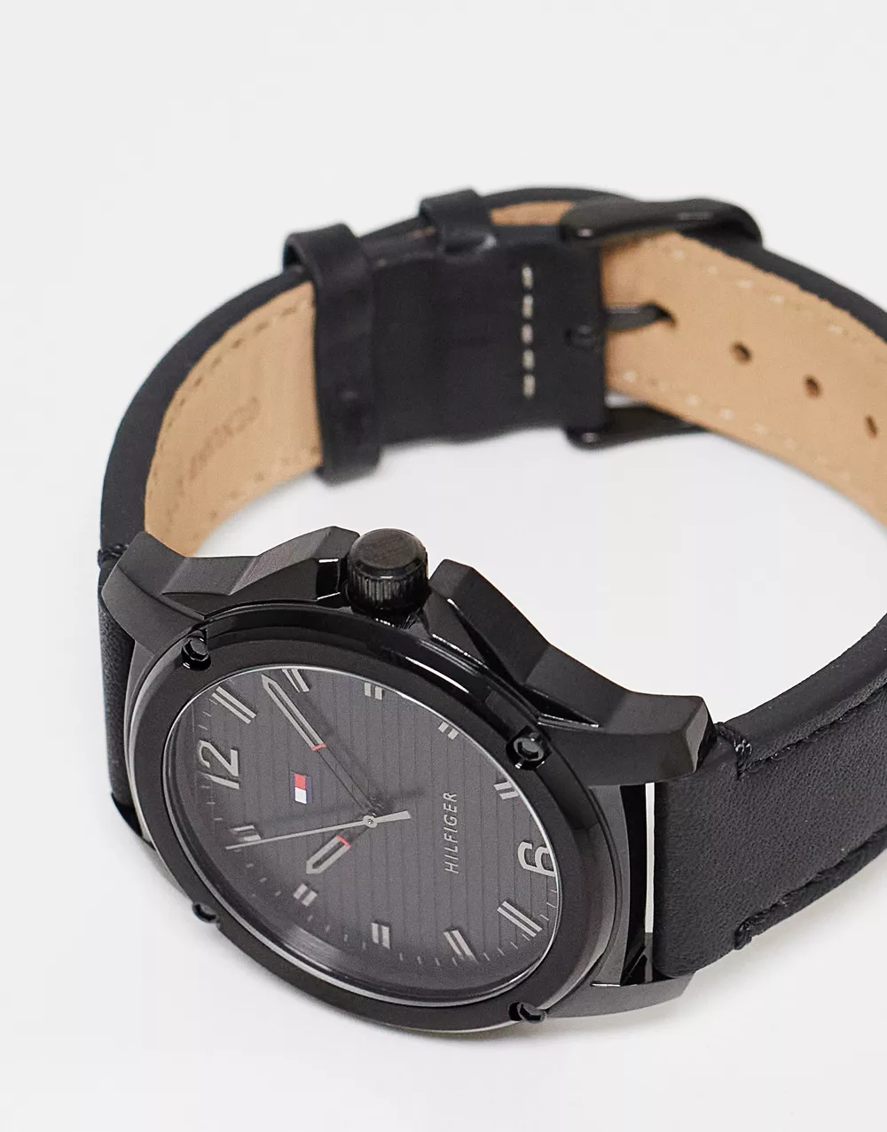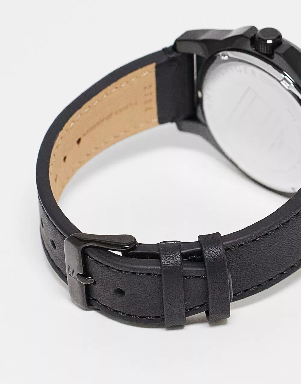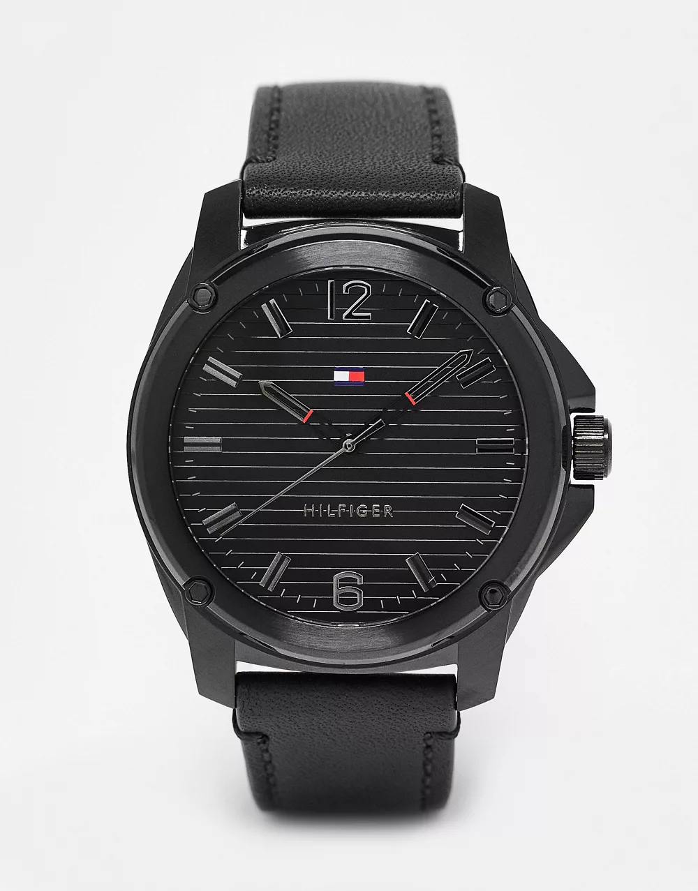 - Tommy Hilfiger mens leather watch in triple black 1710485