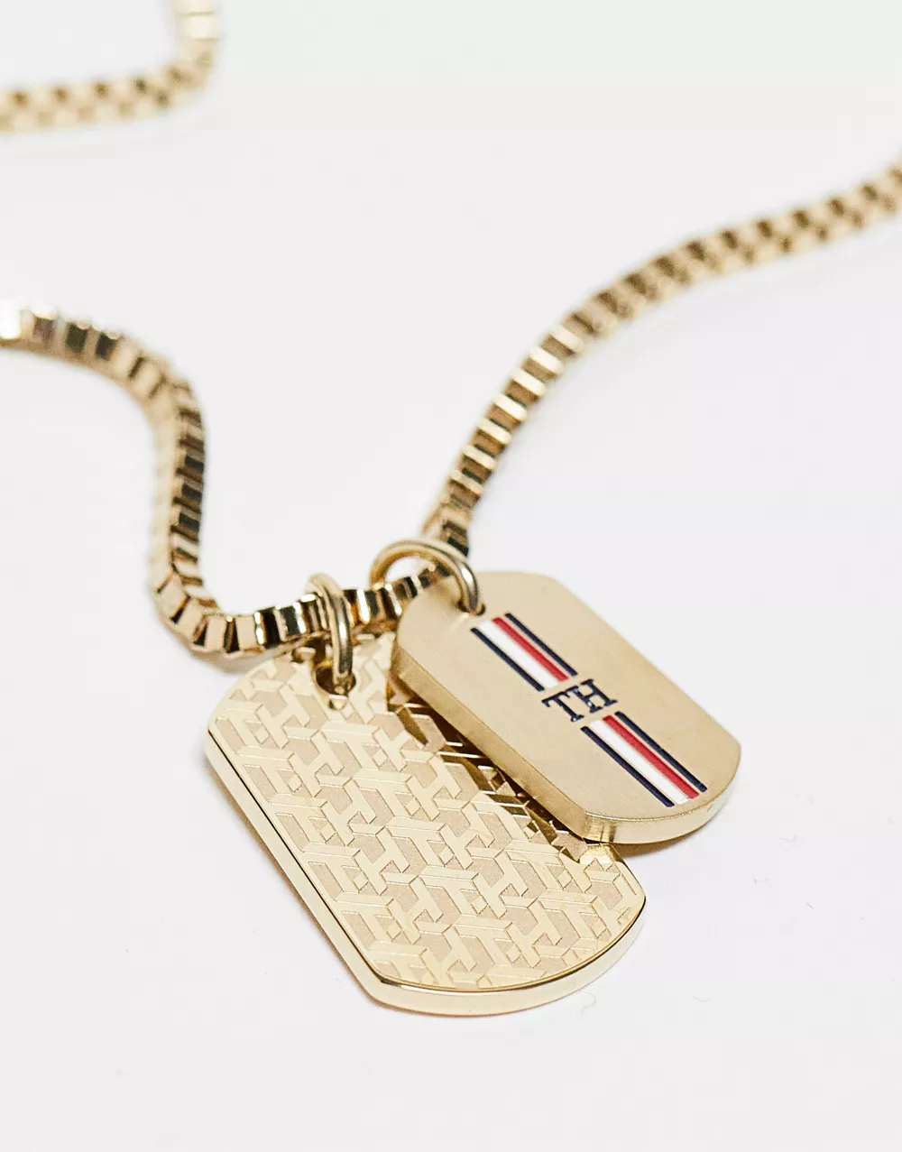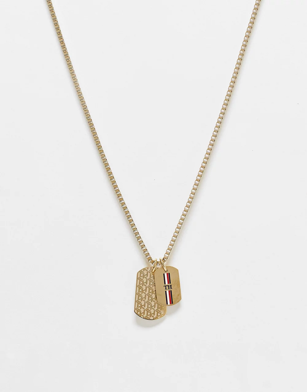 - Tommy Hilfiger neck chain in gold with double dog tag pendants