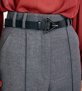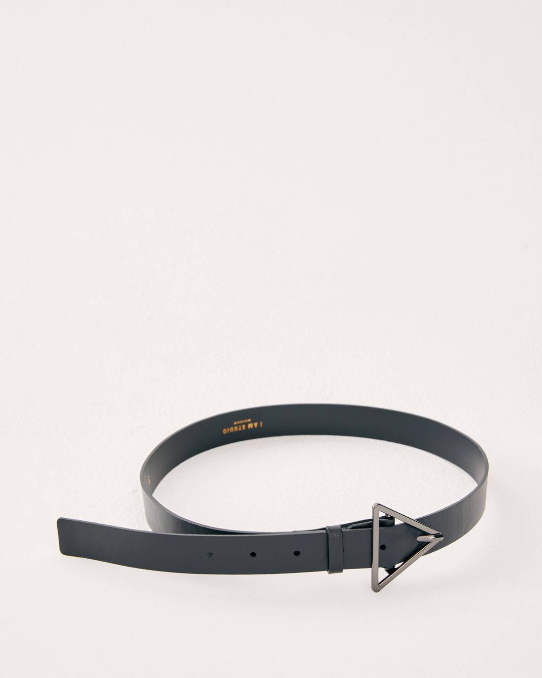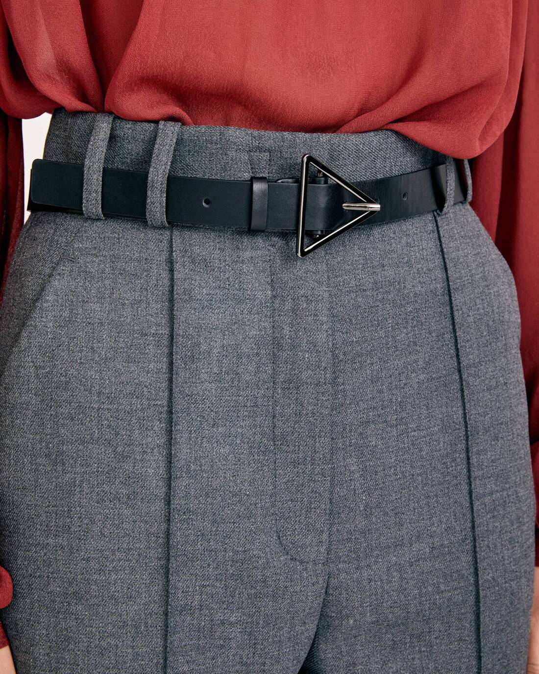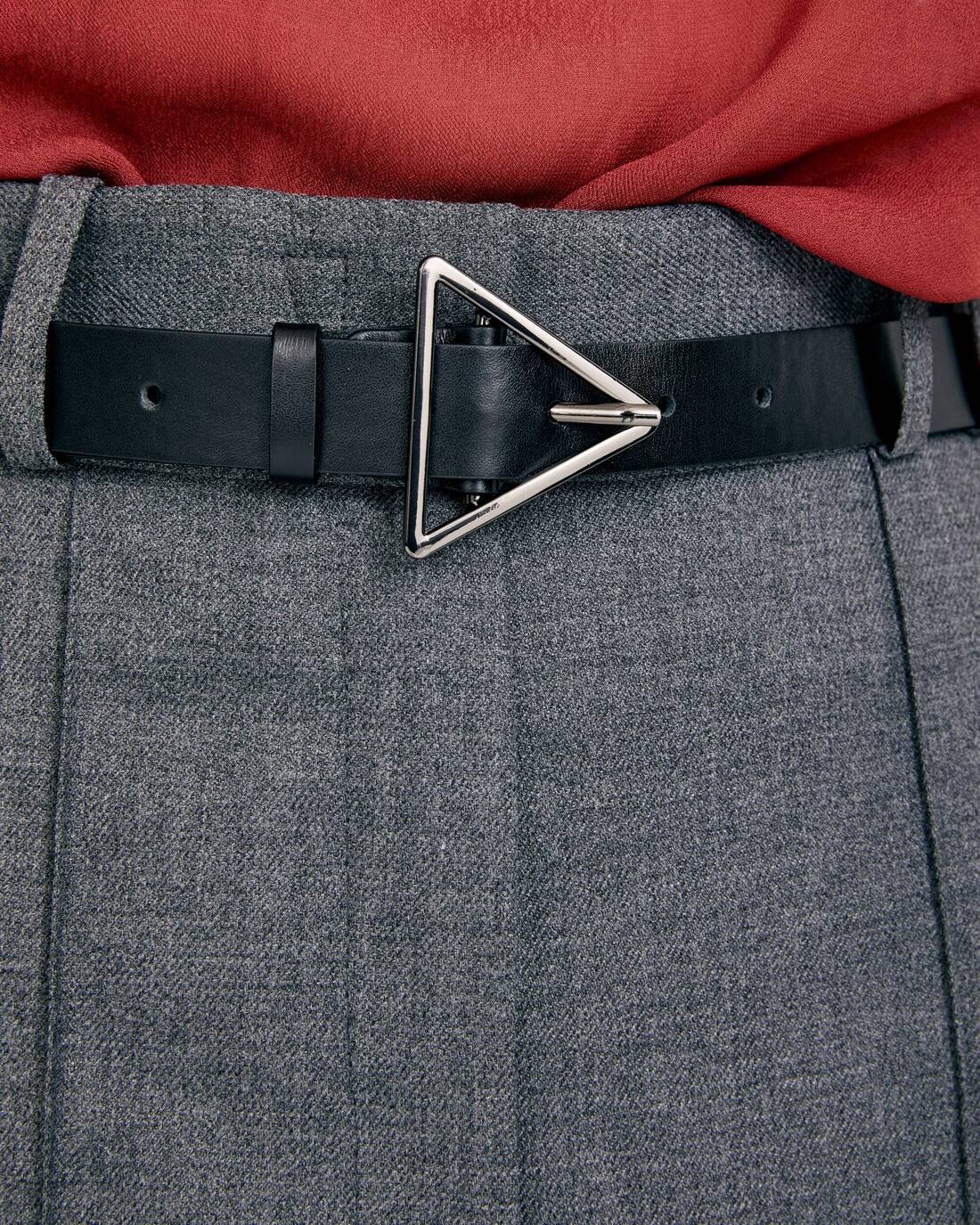 - ТОНКИЙ КОЖАНЫЙ РЕМЕНЬ С ТРЕУГОЛЬНОЙ ПРЯЖКОЙ