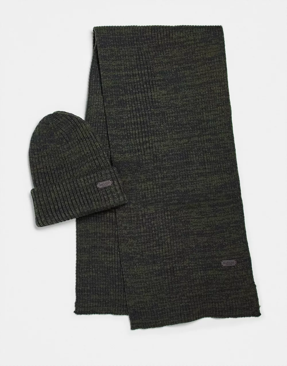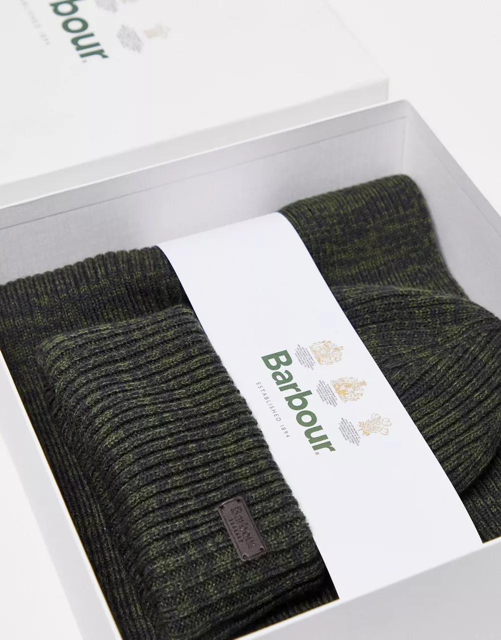 - Barbour Crimdon beanie hat and scarf gift set in khaki