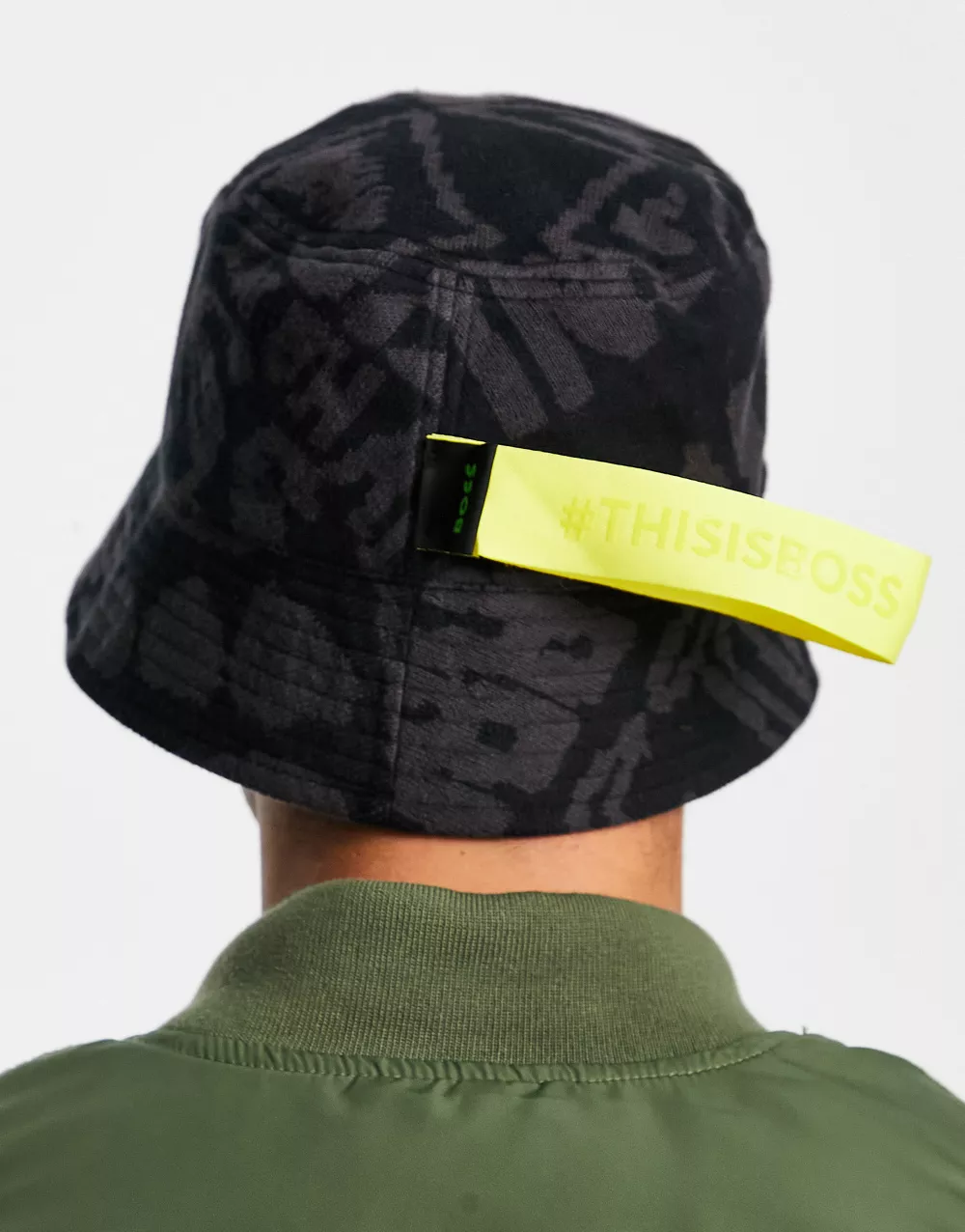 - BOSS Green Alotus reversible bucket hat in black with detachable branding