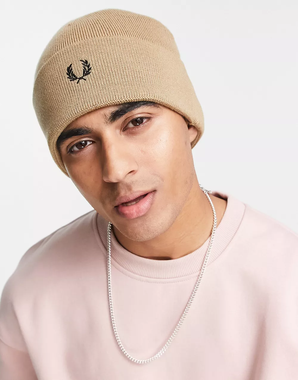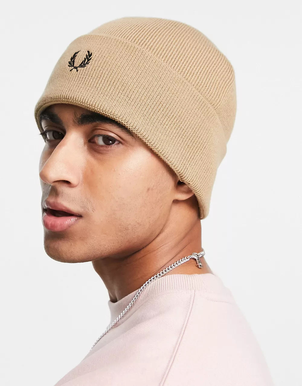 - Fred Perry merino wool fisherman beanie in stone