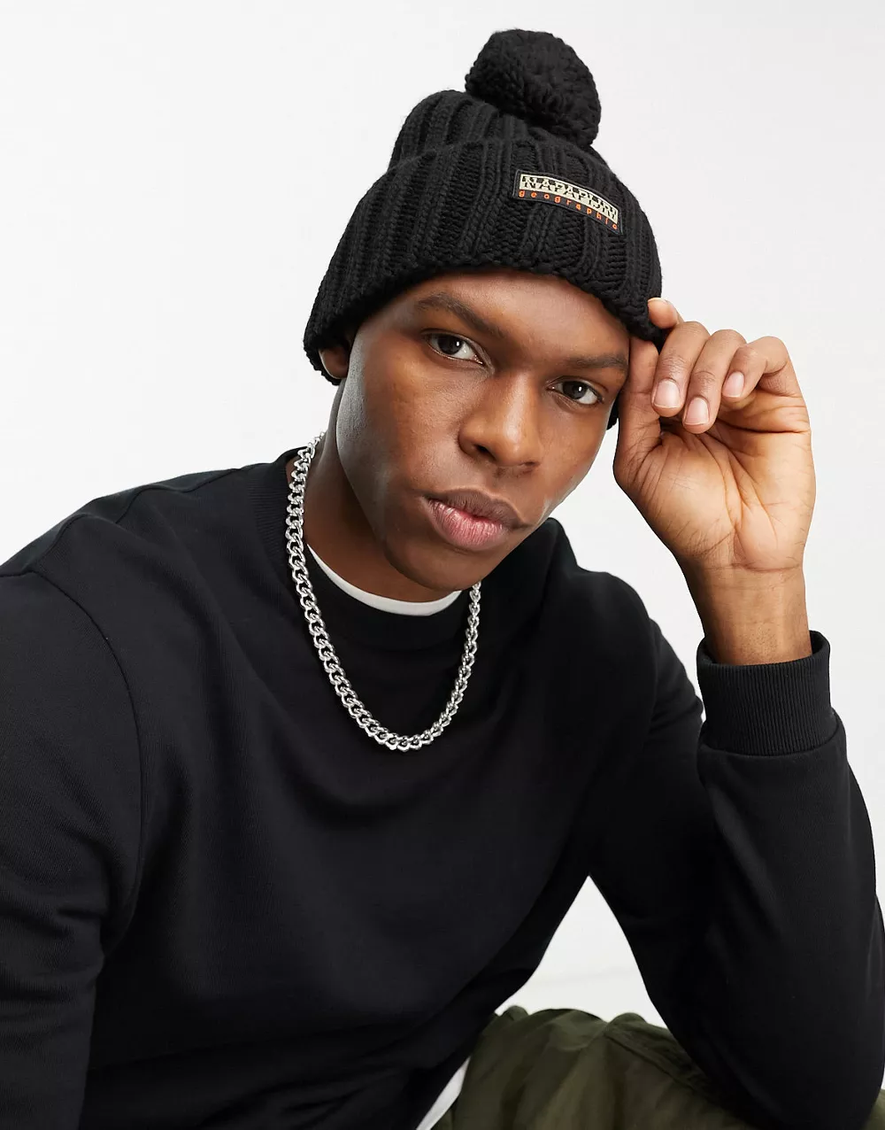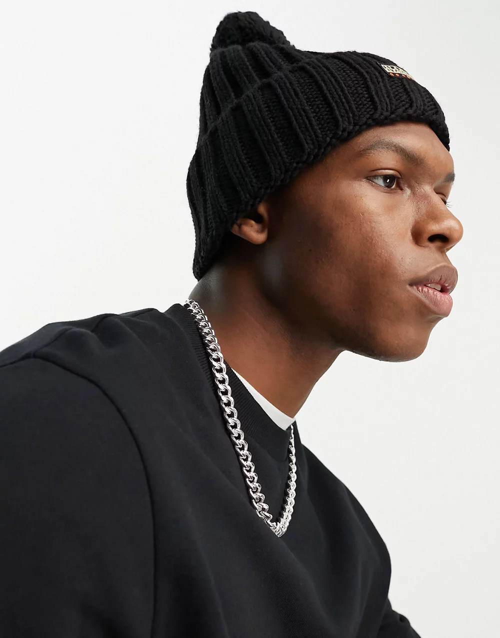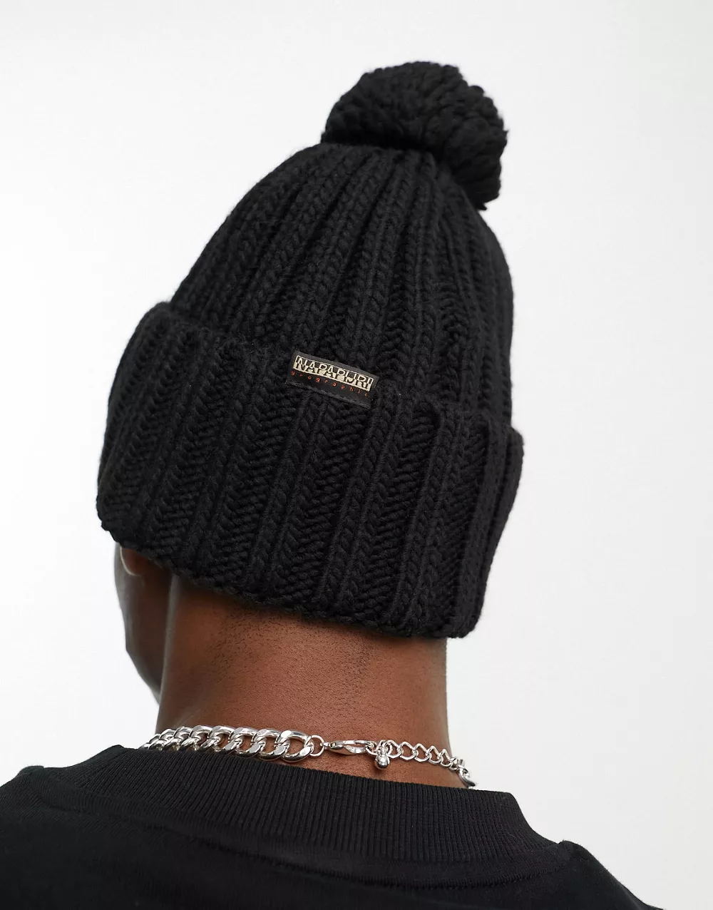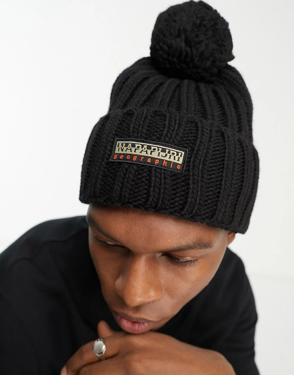 - Napapijri fea 2 bobble beanie with patch logo in black