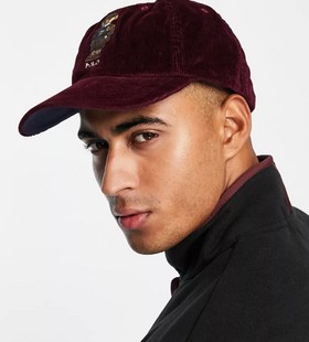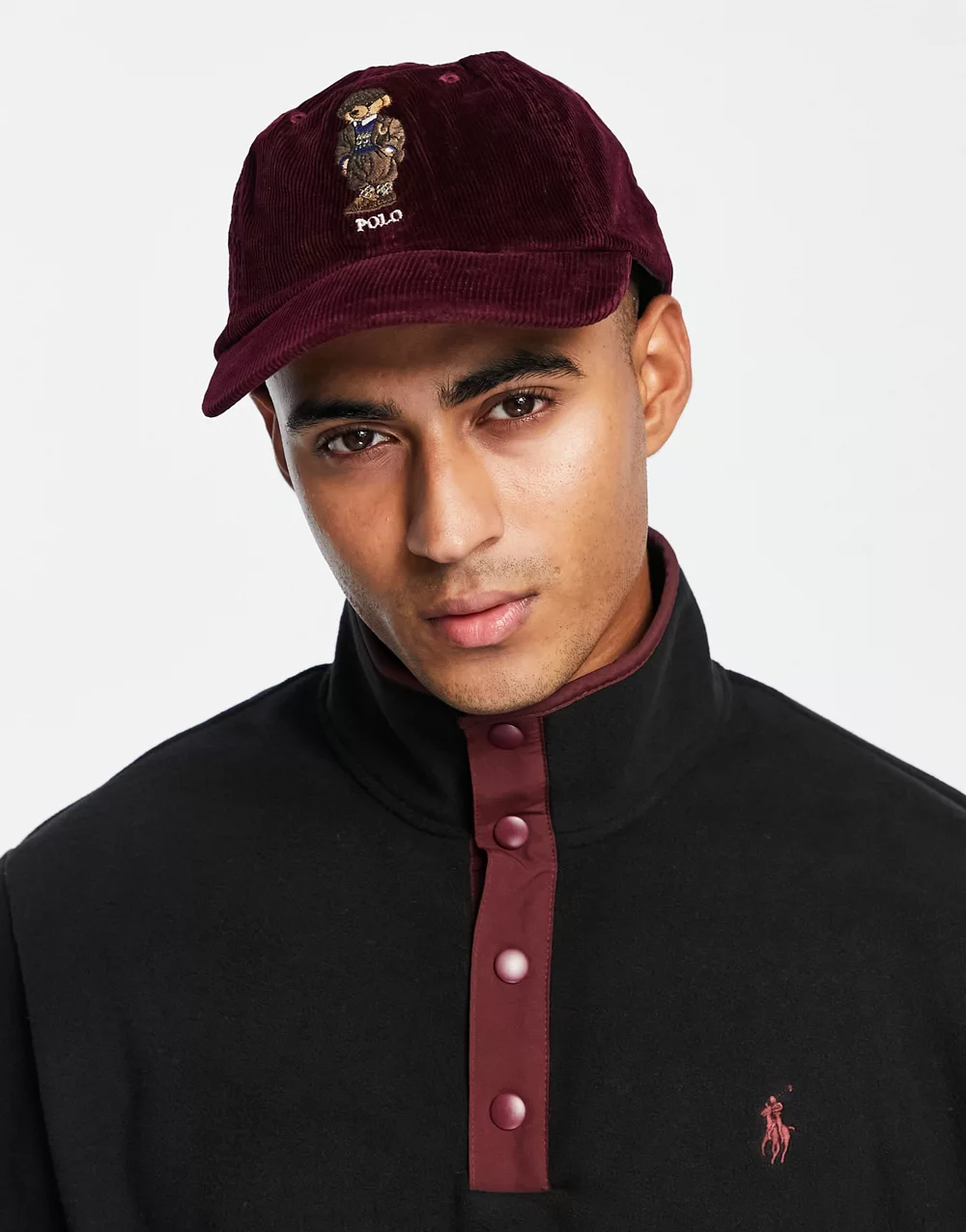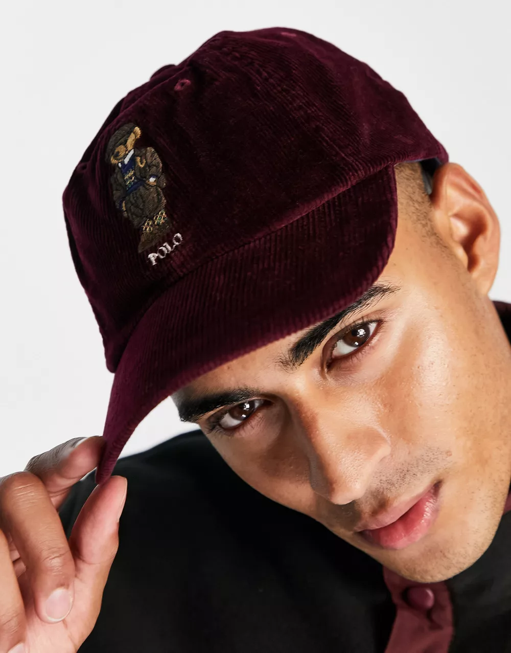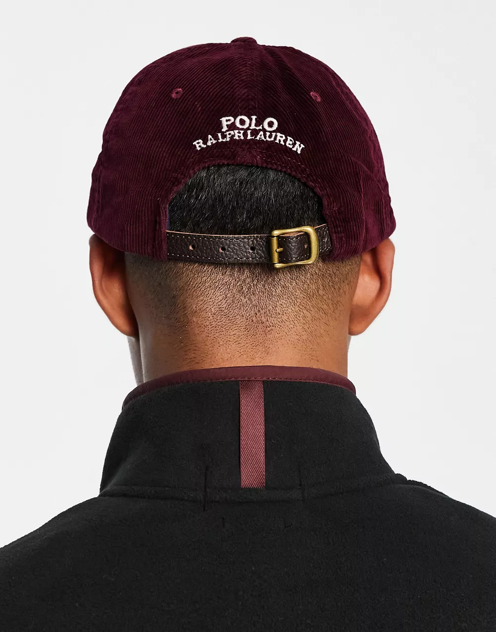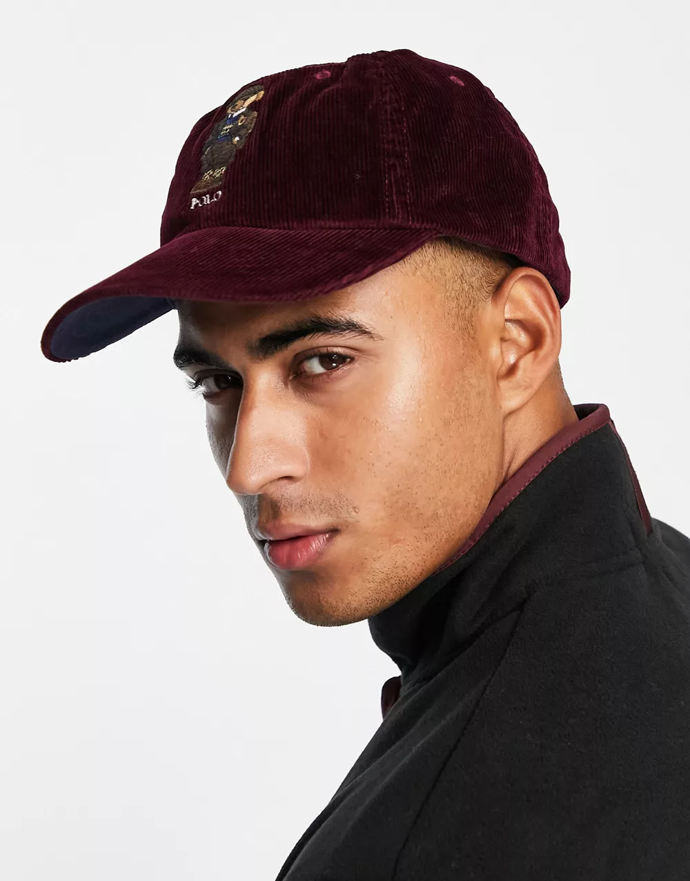 - Polo Ralph Lauren cord baseball cap in burgundy with bear logo