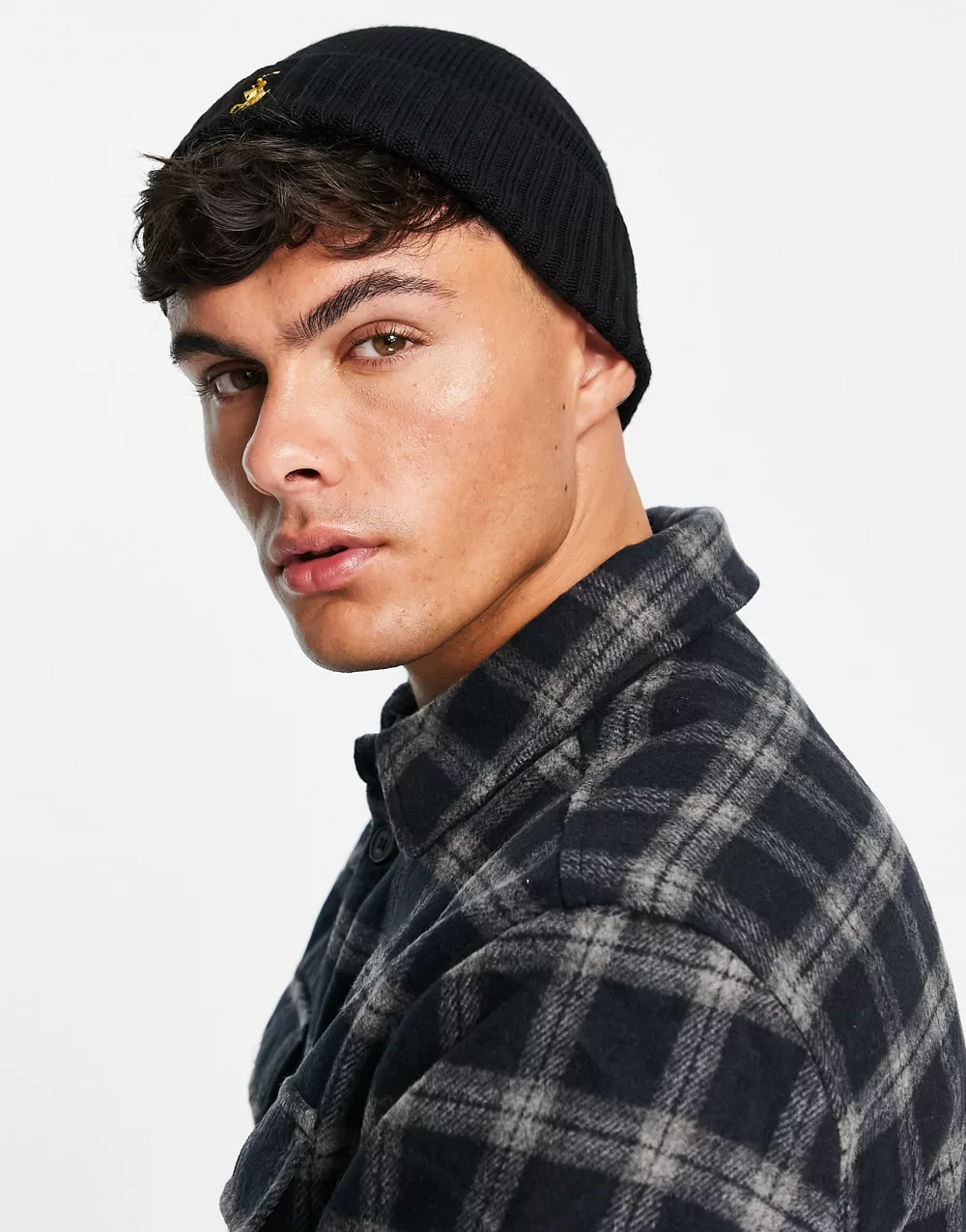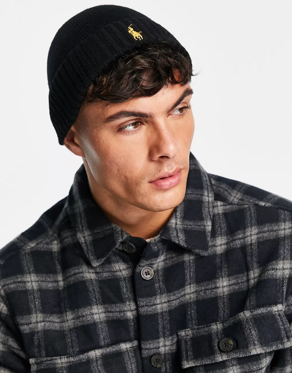 - Polo Ralph Lauren merino wool beanie in black with gold logo