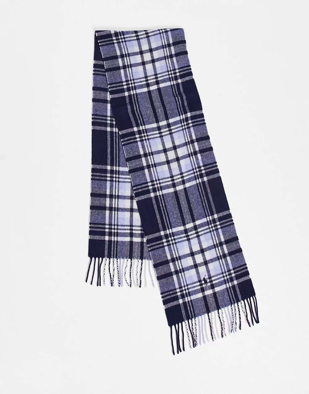 - Polo Ralph Lauren wool mix scarf in blue check with logo - MBLUE