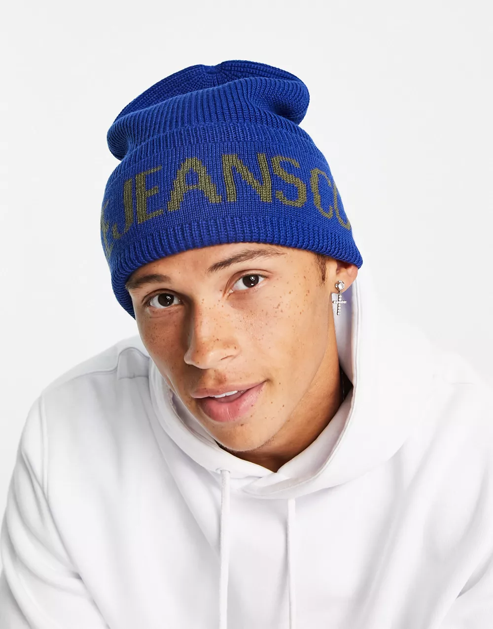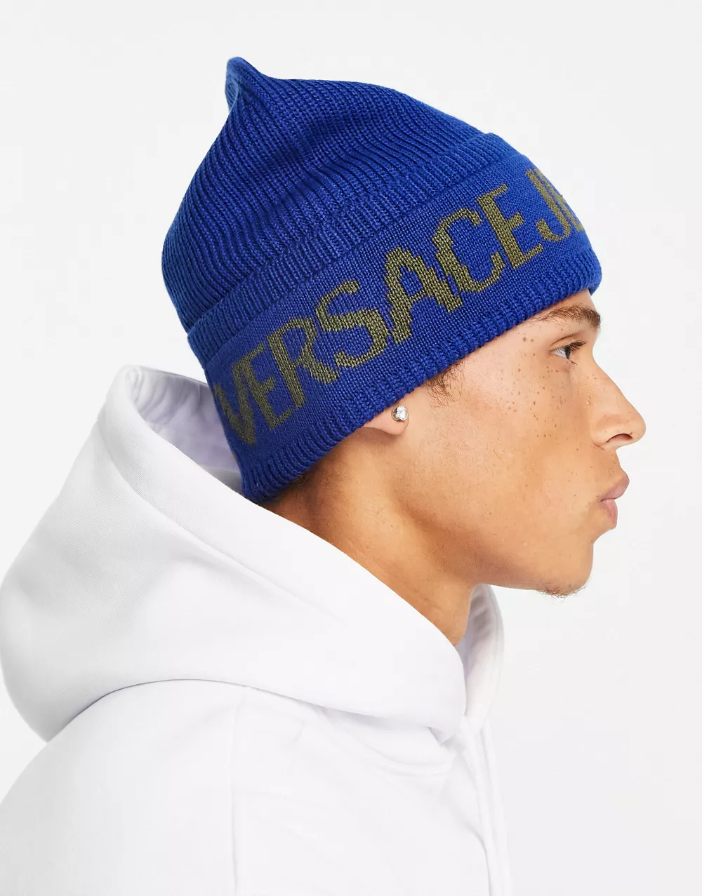 - Versace Jeans Couture logo beanie in blue