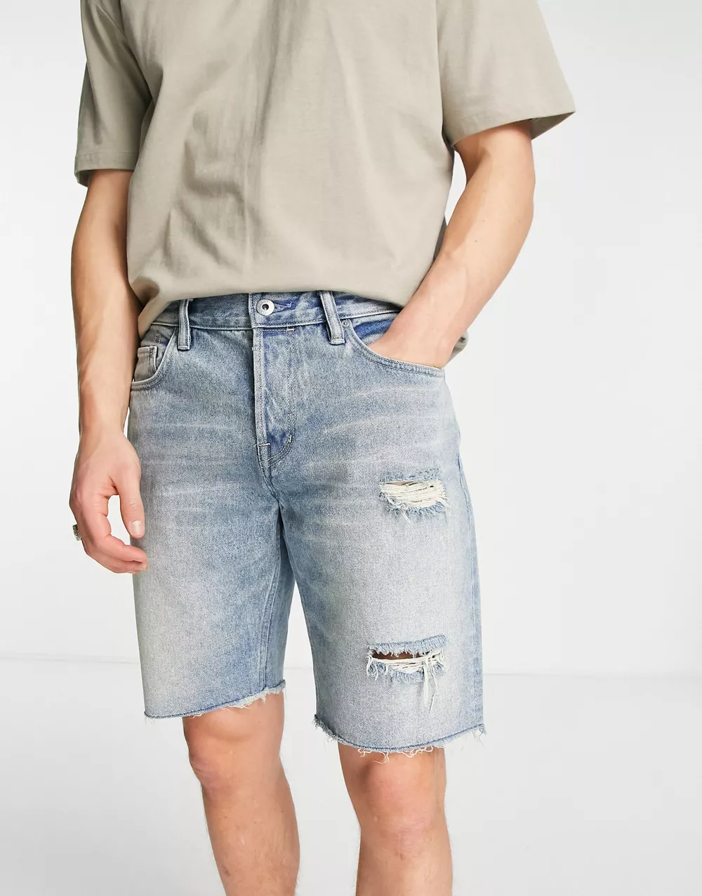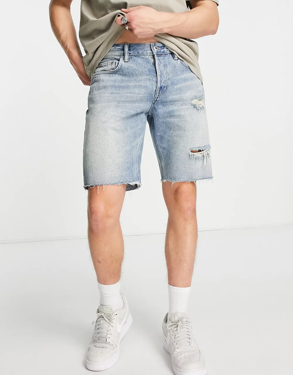 - AllSaints Switch ripped shorts in light wash