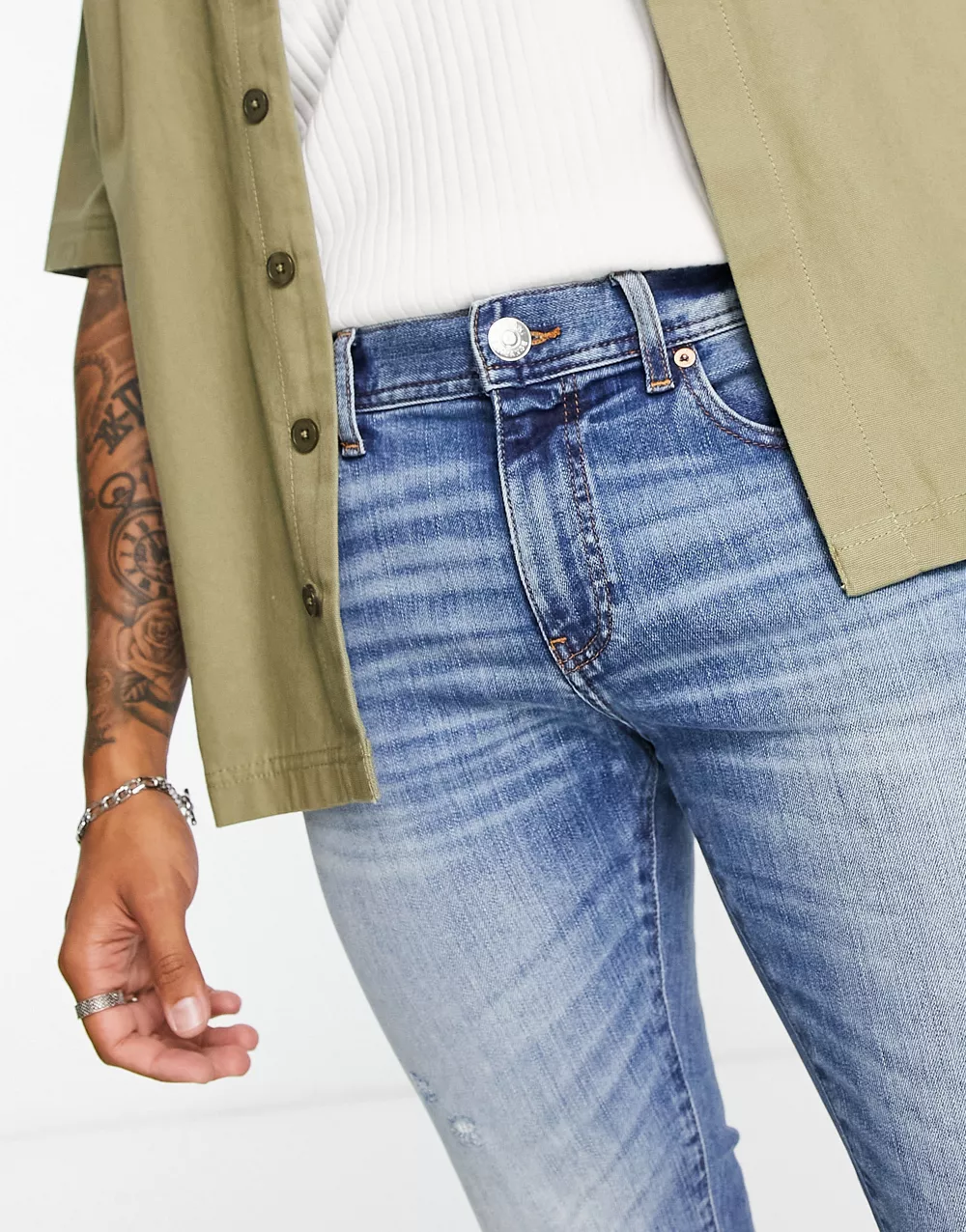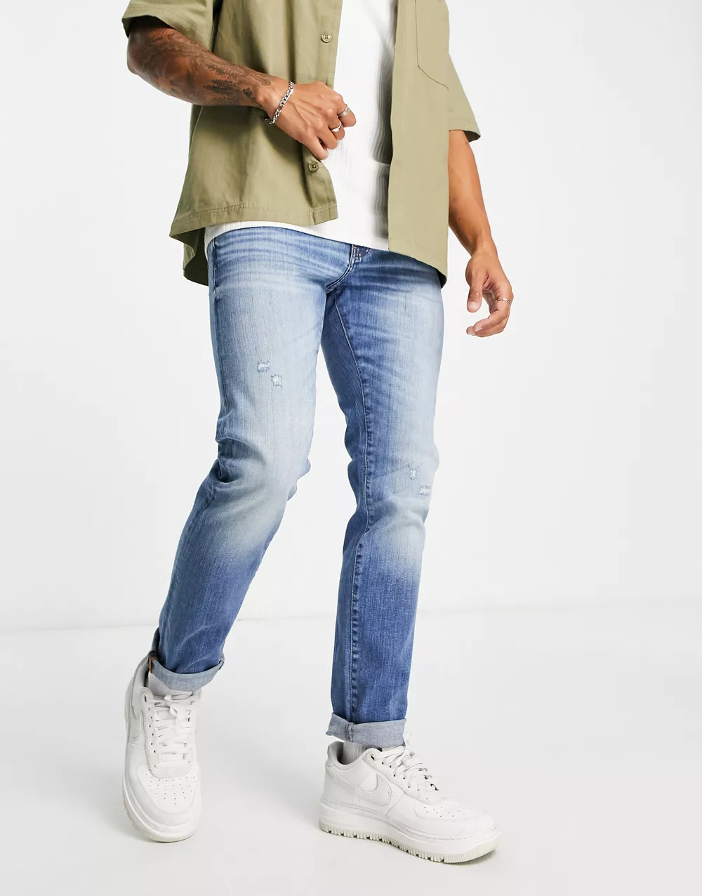- Armani Exchange slim leg jeans in light wash blue