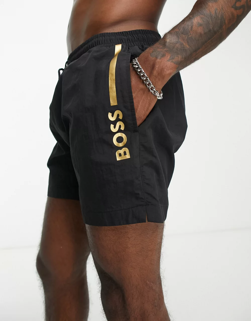 - BOSS Bodywear Ole gold logo swimshorts in black
