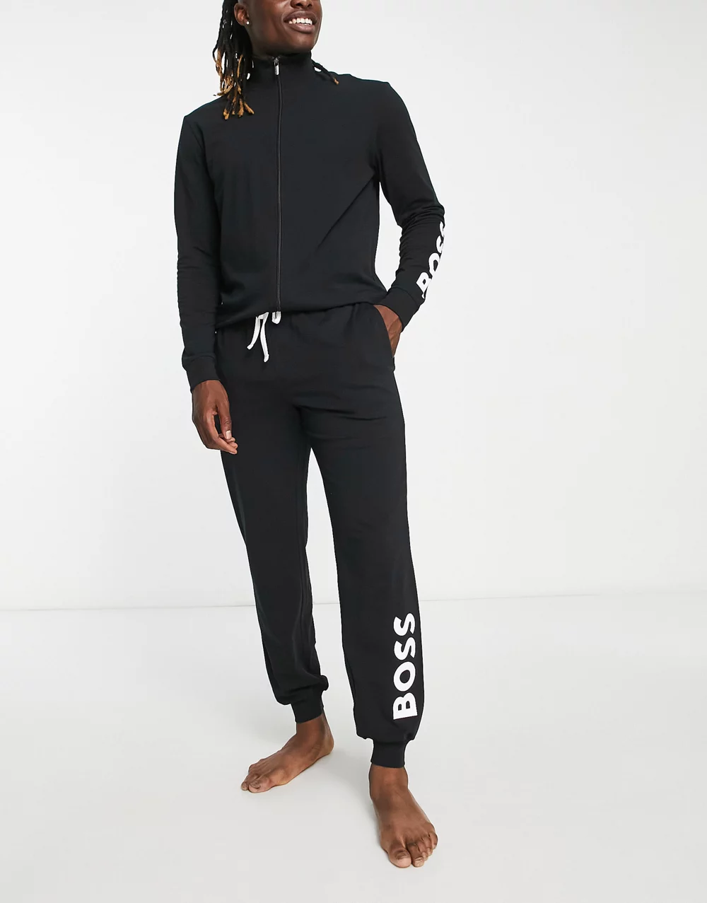 - BOSS Bodywear vertical logo zip through sweatshirt and joggers set in black