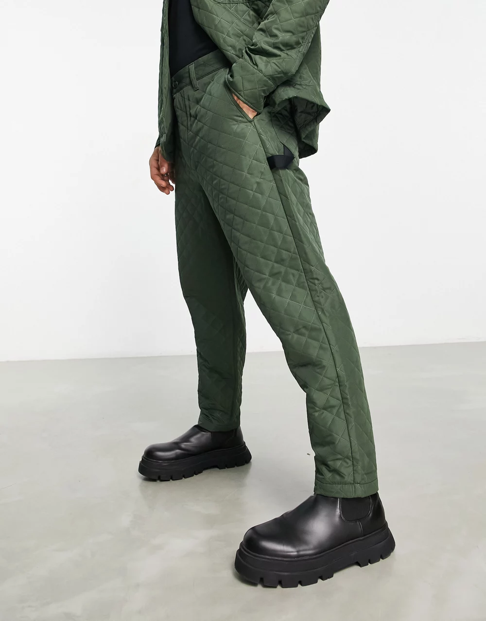 - BOSS Orange Statum quilted tapered fit trousers in khaki