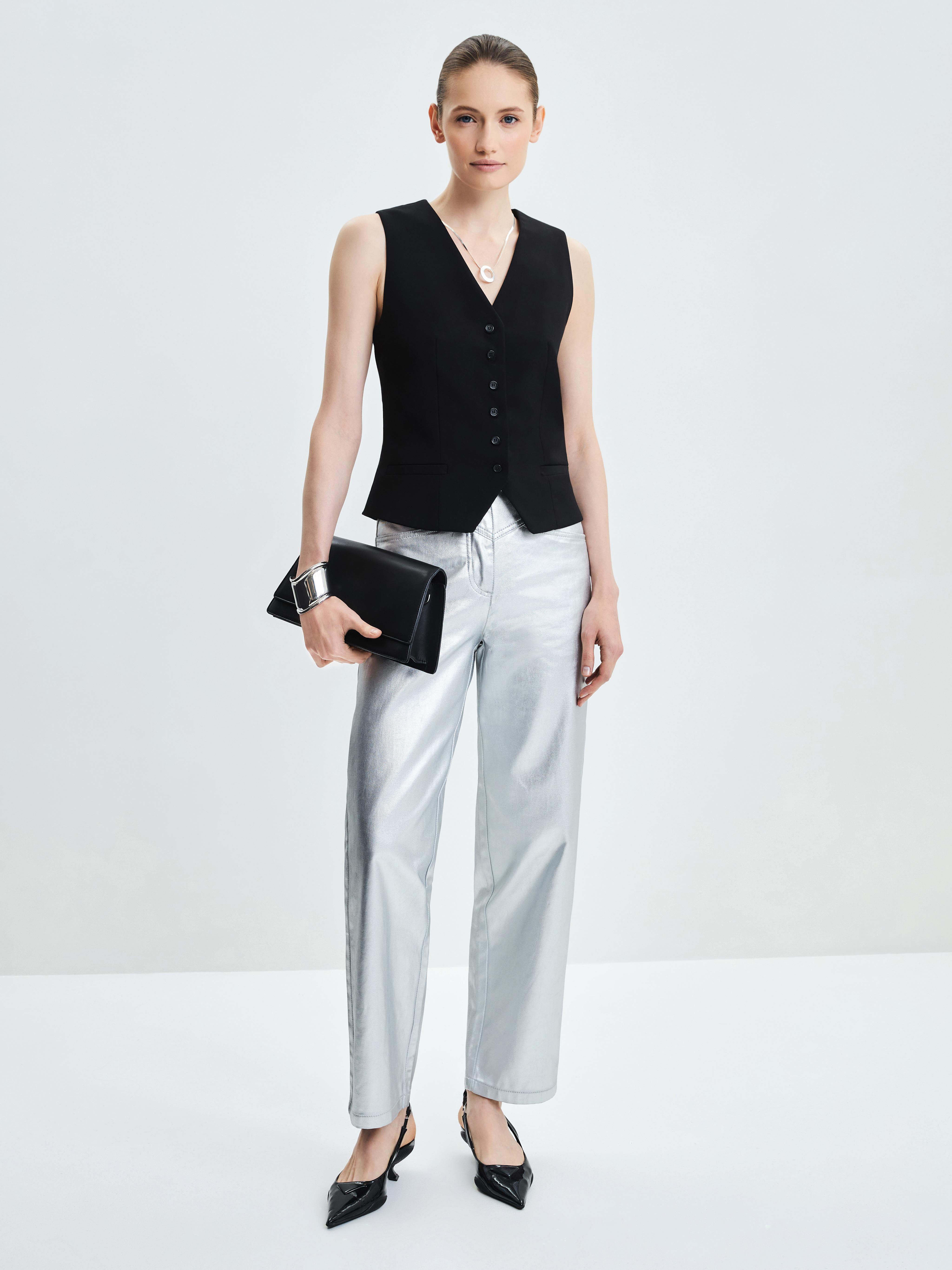Параметры: Тип карманов: 2 боковых кармана; Модель брюк: с высокой посадкой; Тип посадки: высокая
