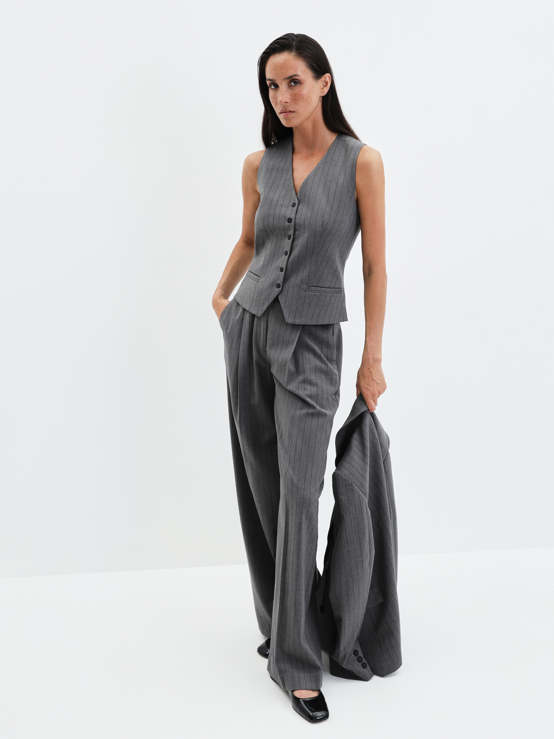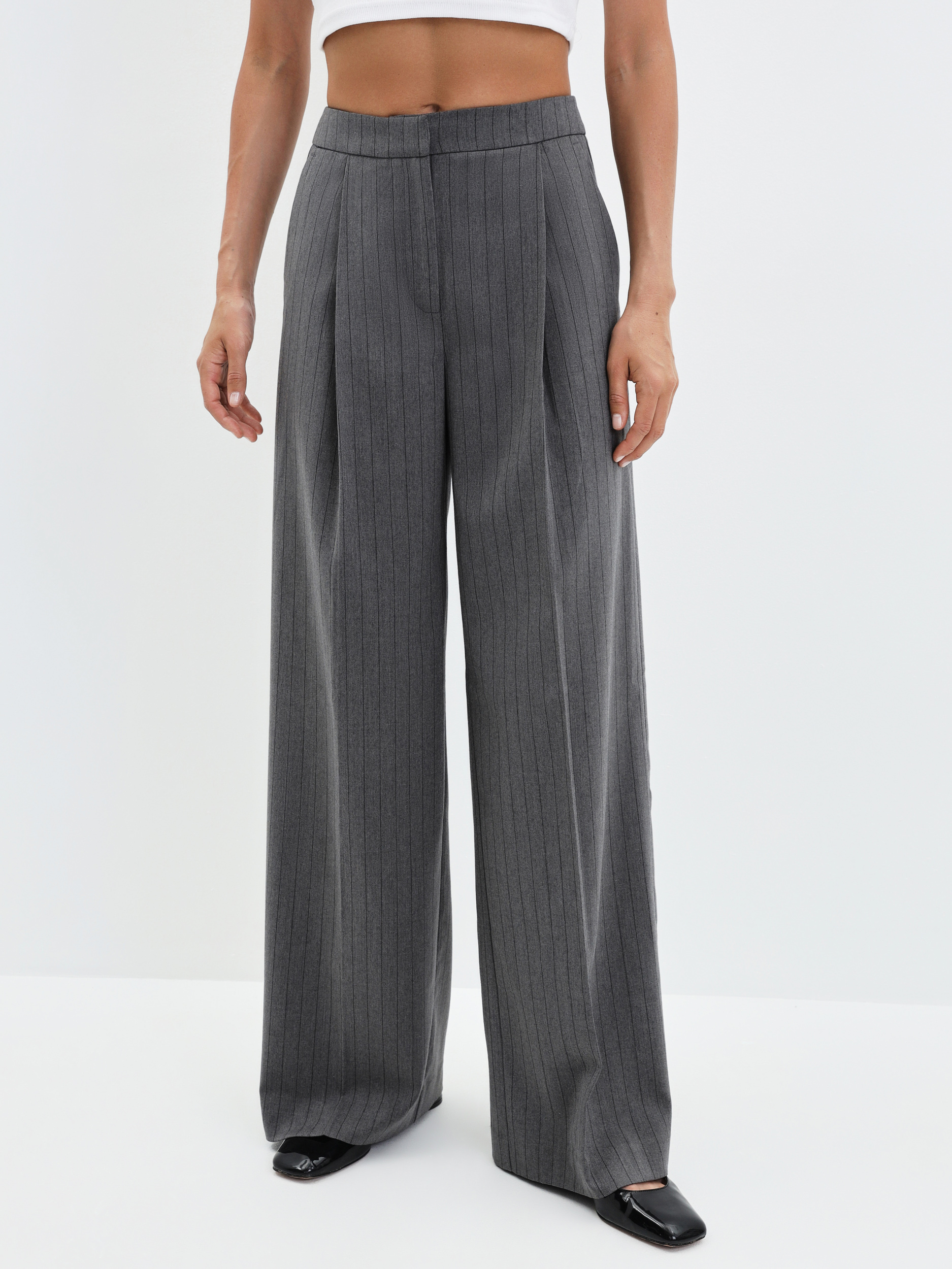 Параметры: Тип карманов: 2 боковых кармана; Модель брюк: прямые; широкие; Застежка: молния; Тип посадки: высокая