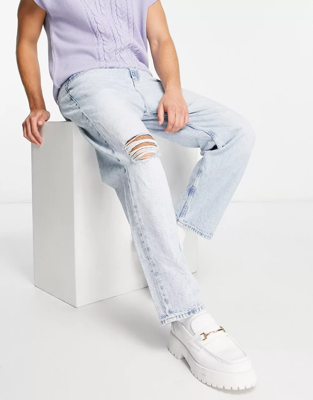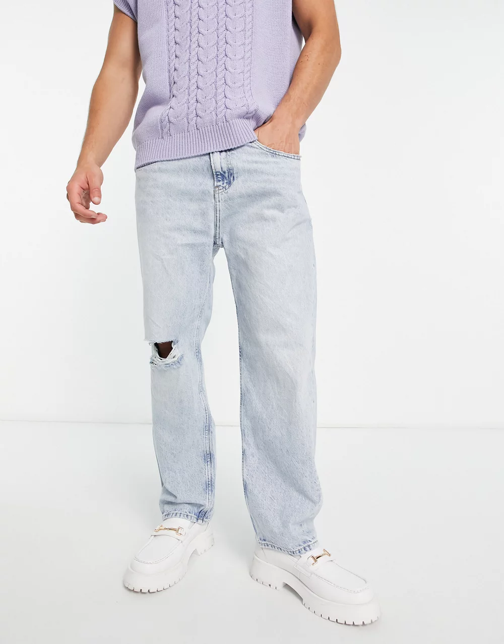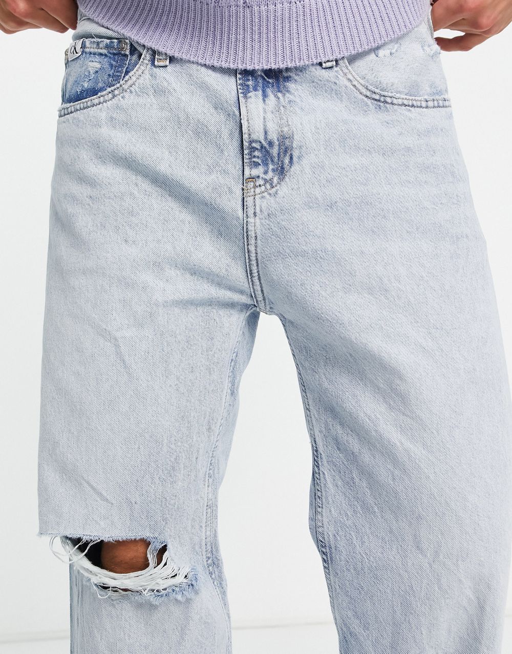 - Calvin Klein Jeans 90s straight crop jeans with distressed detail in light wash