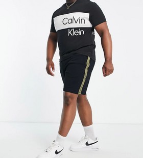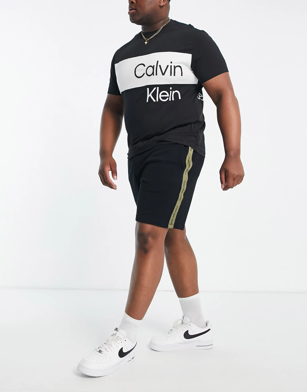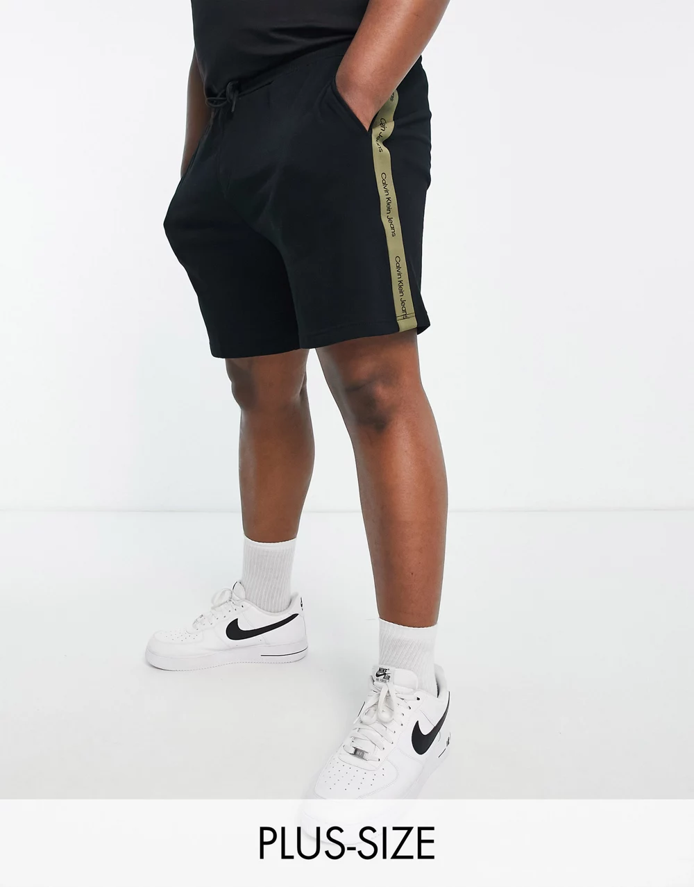- Calvin Klein Jeans Big & Tall contrast tape sweat shorts in black