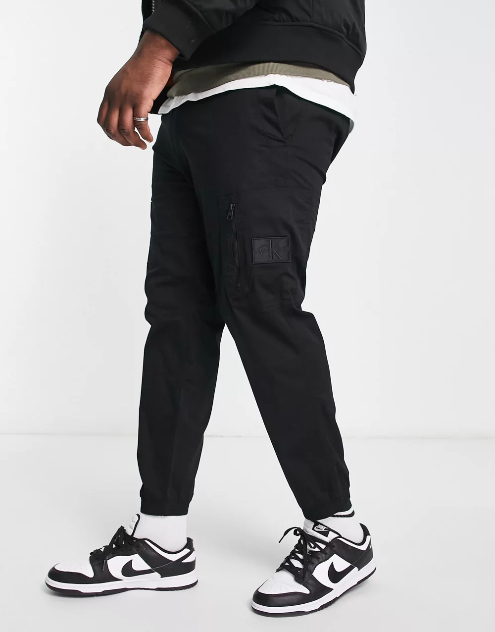 - Calvin Klein Jeans Big & Tall skinny washed cargo trousers in black