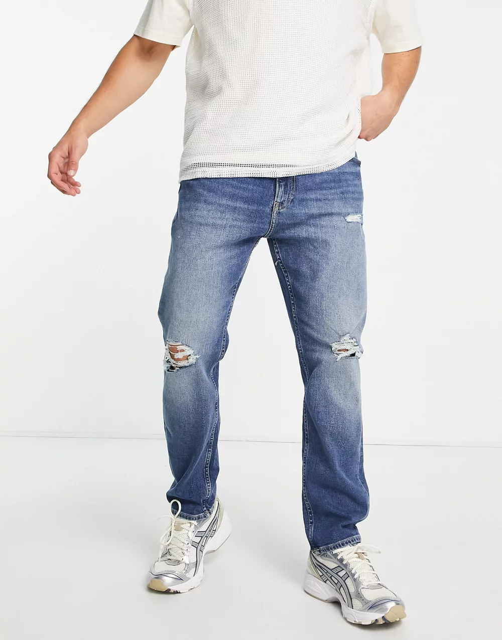 - Calvin Klein Jeans dad fit distressed jeans in mid wash