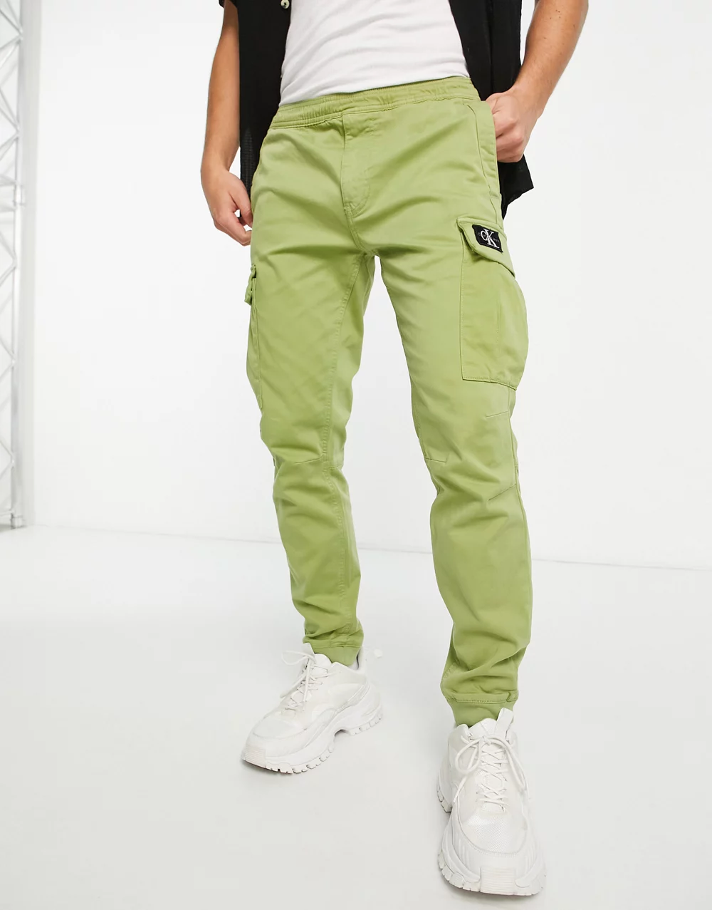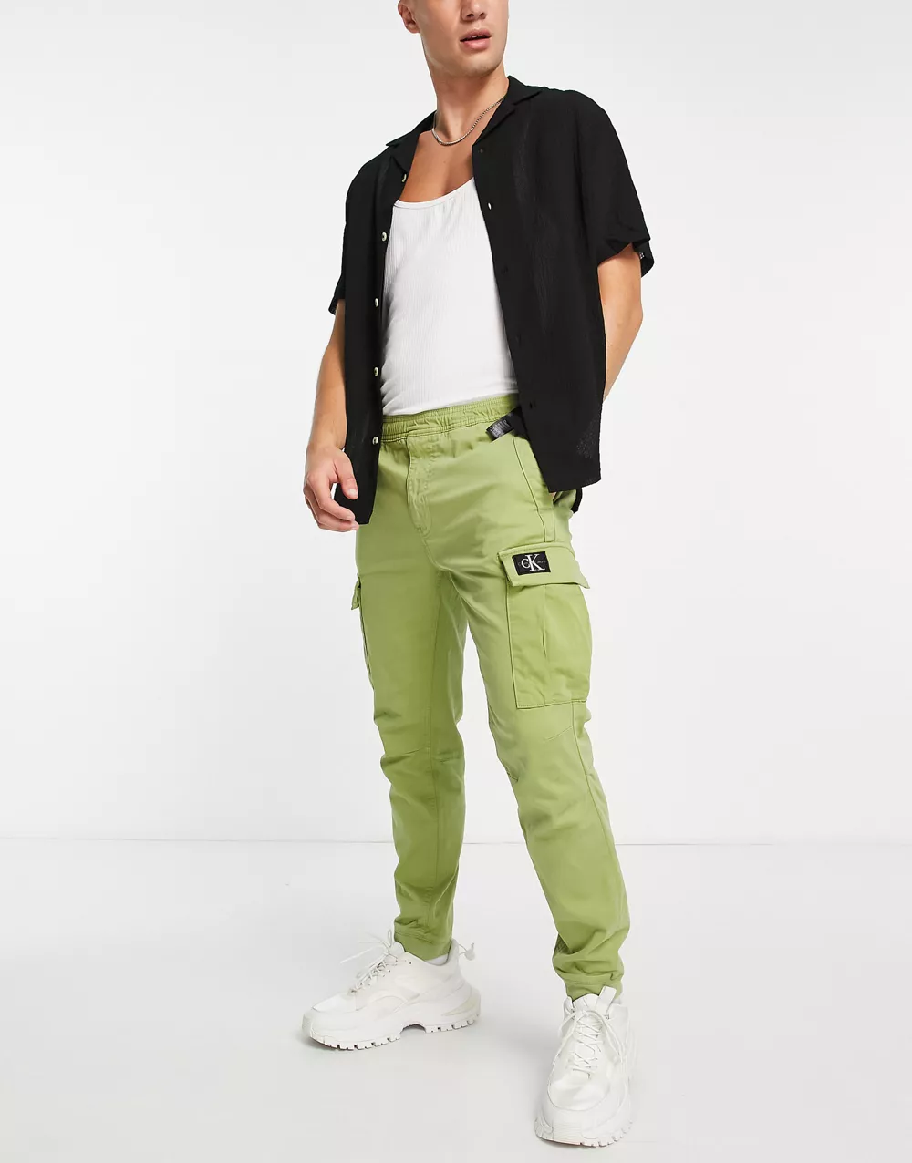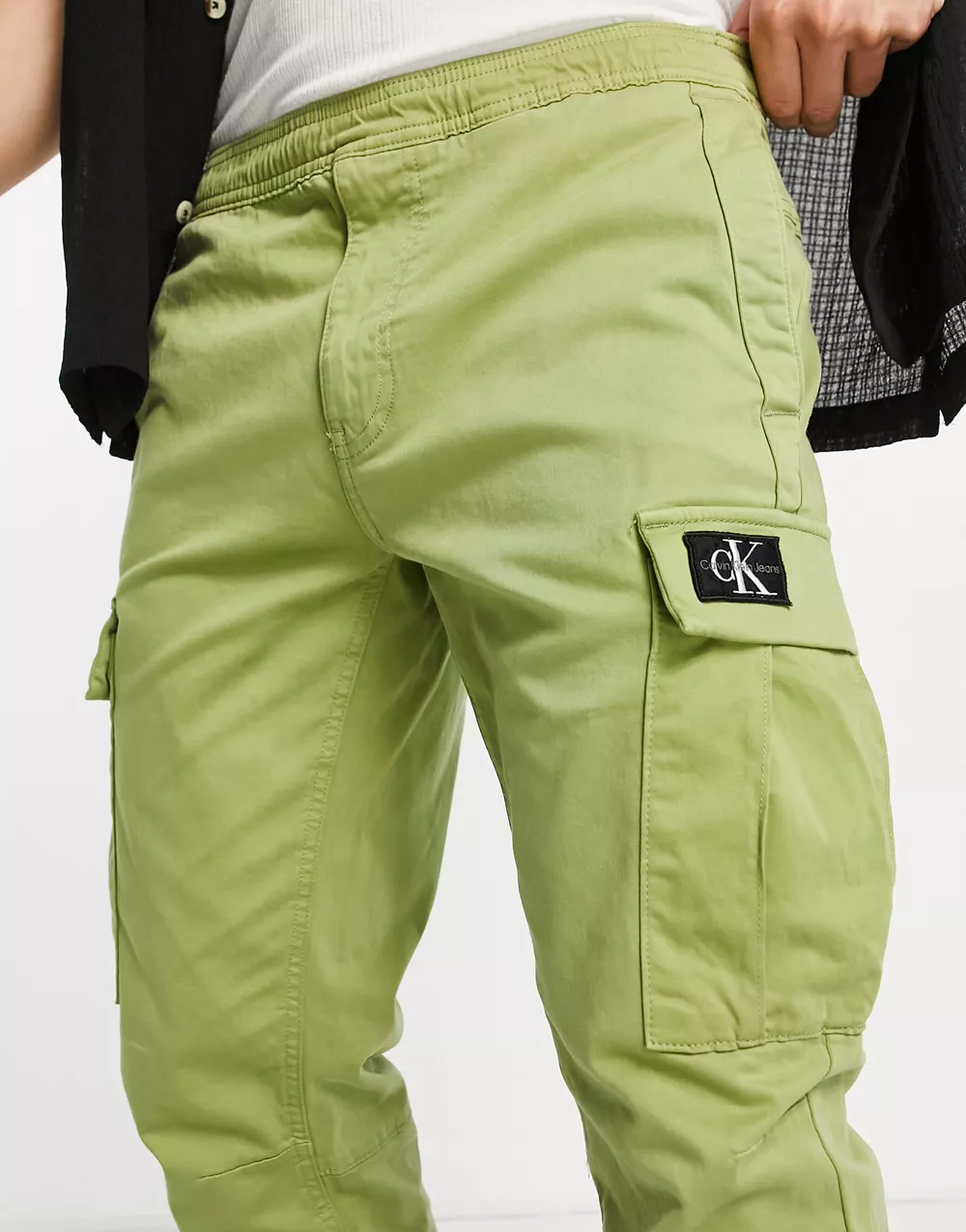 - Calvin Klein Jeans skinny cargo trousers in washed green