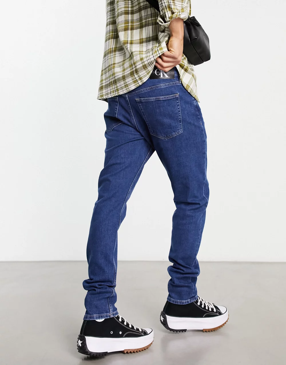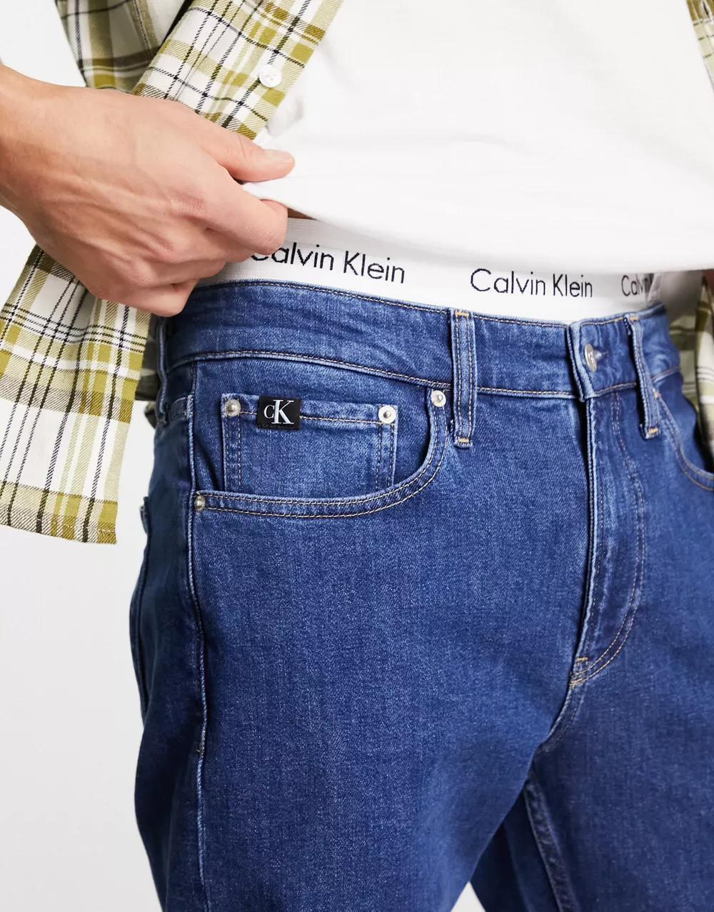 - Calvin Klein Jeans slim tapered fit jeans in mid wash