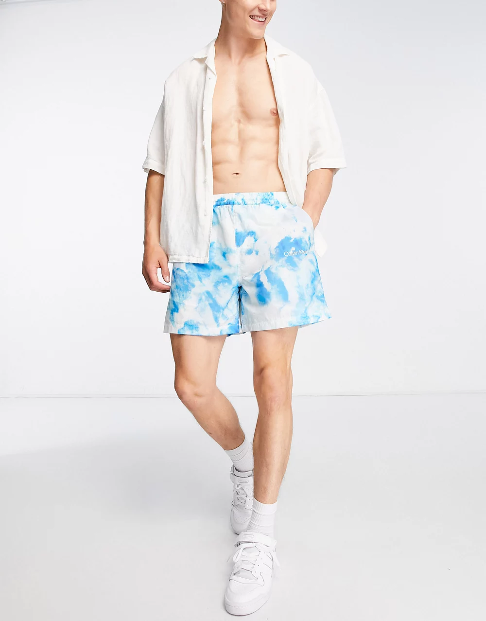 - Calvin Klein Jeans summer splash all over print woven co-ord shorts in blue