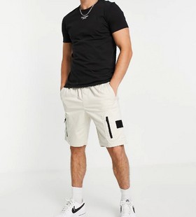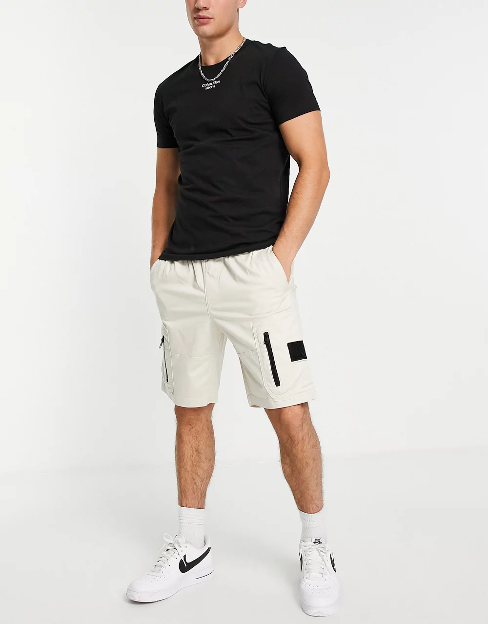 - Calvin Klein Jeans washed cargo shorts with zip detail in stone