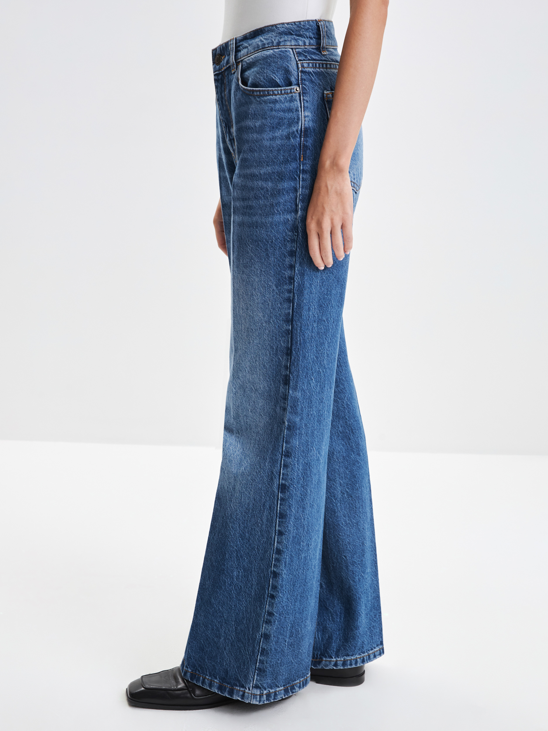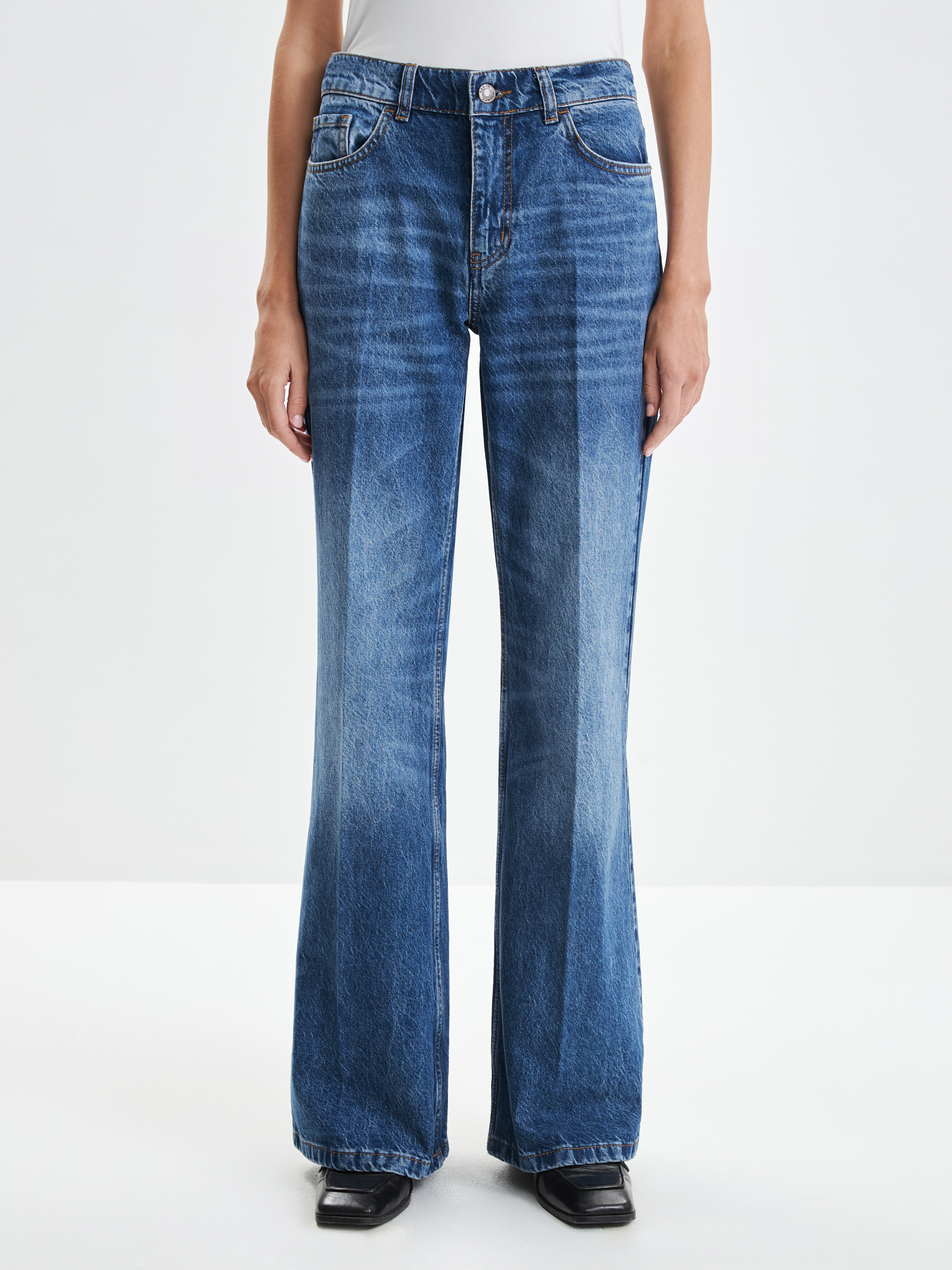 Параметры: Материал (деним): без эластана; Модель джинс на английском: boot cut; Тип посадки: средняя; Модель джинс: клеш