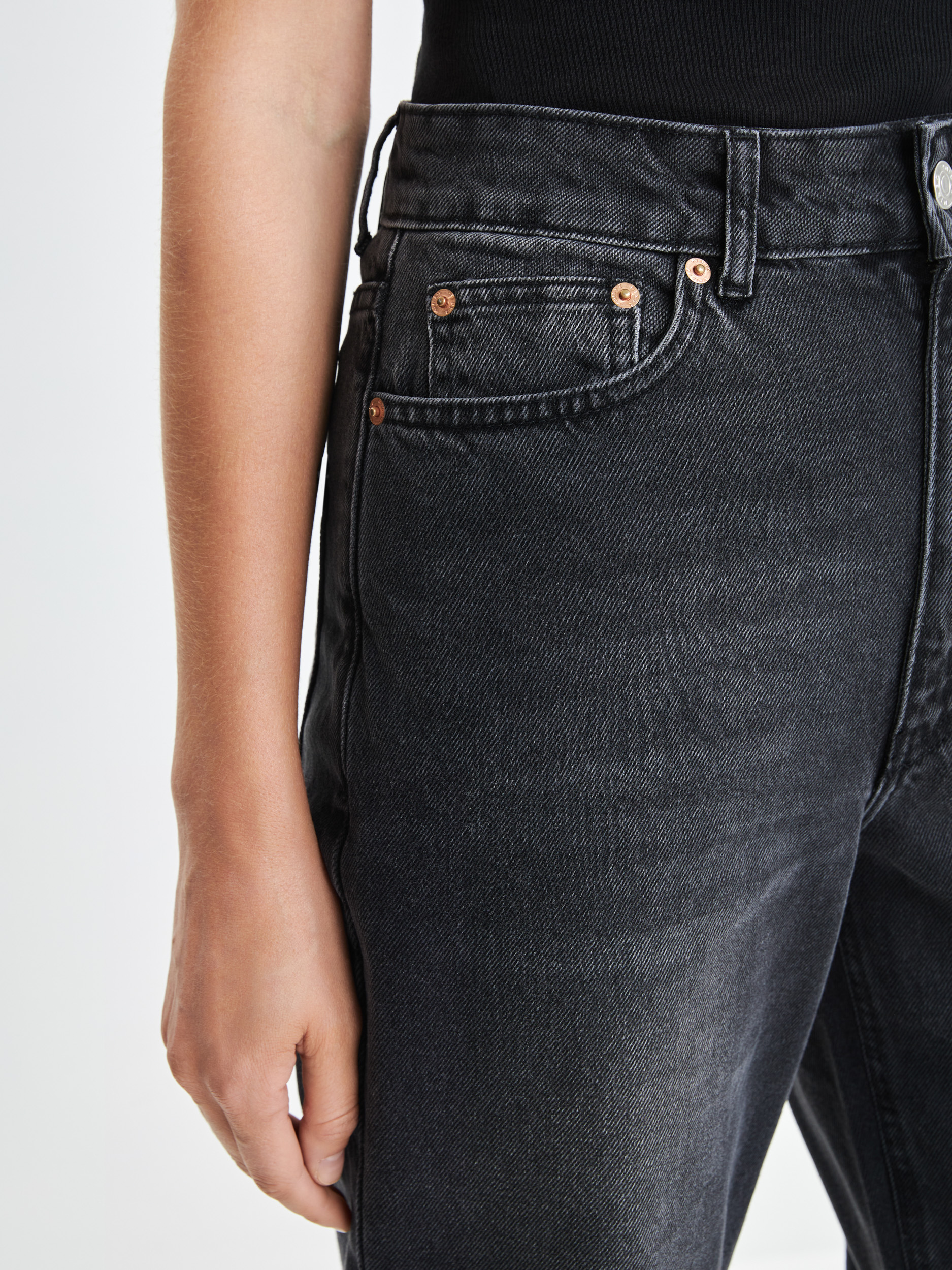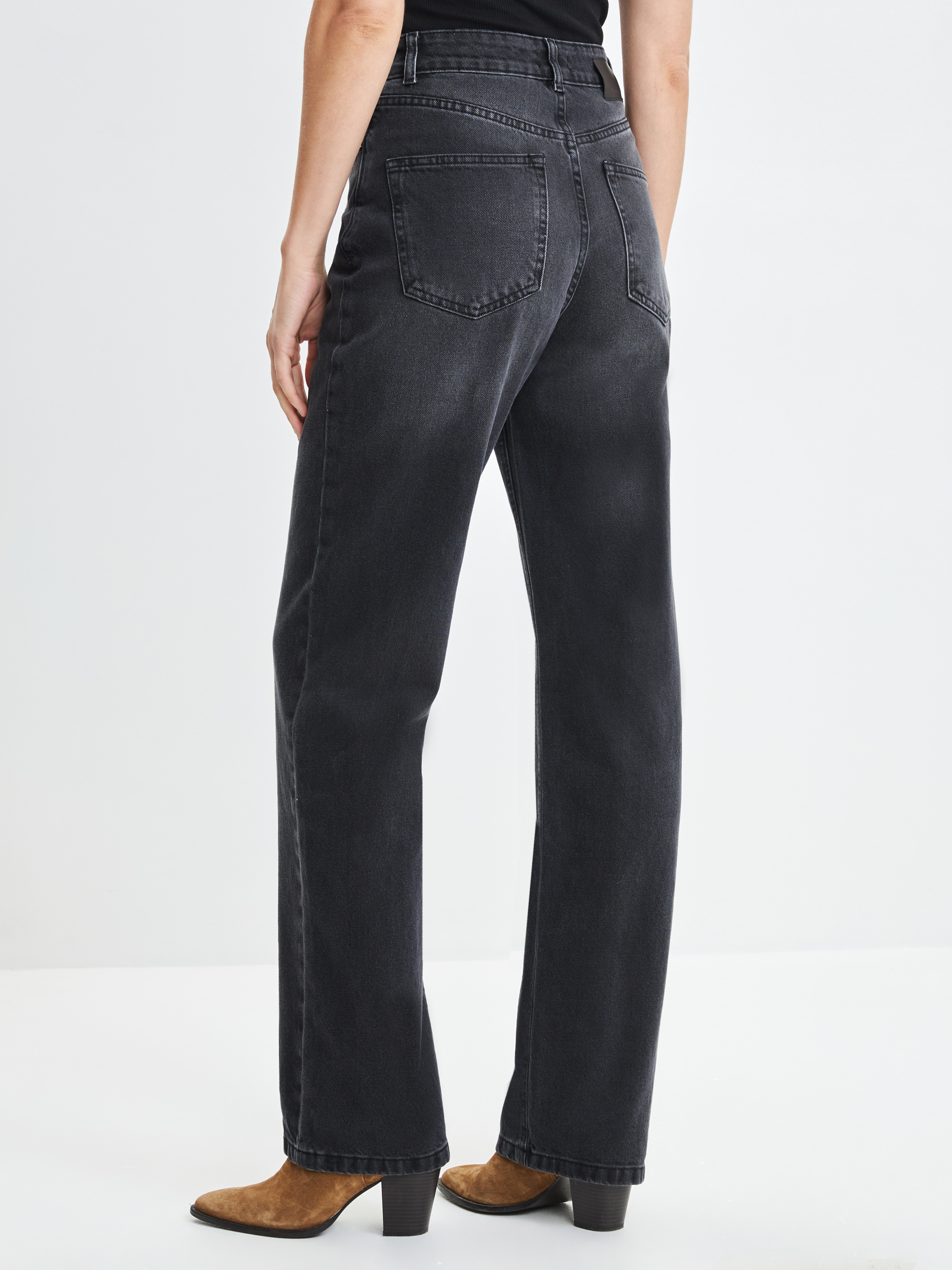 Параметры: Материал (деним): без эластана; Модель джинс на английском: straight; Тип посадки: высокая; Модель джинс: прямые