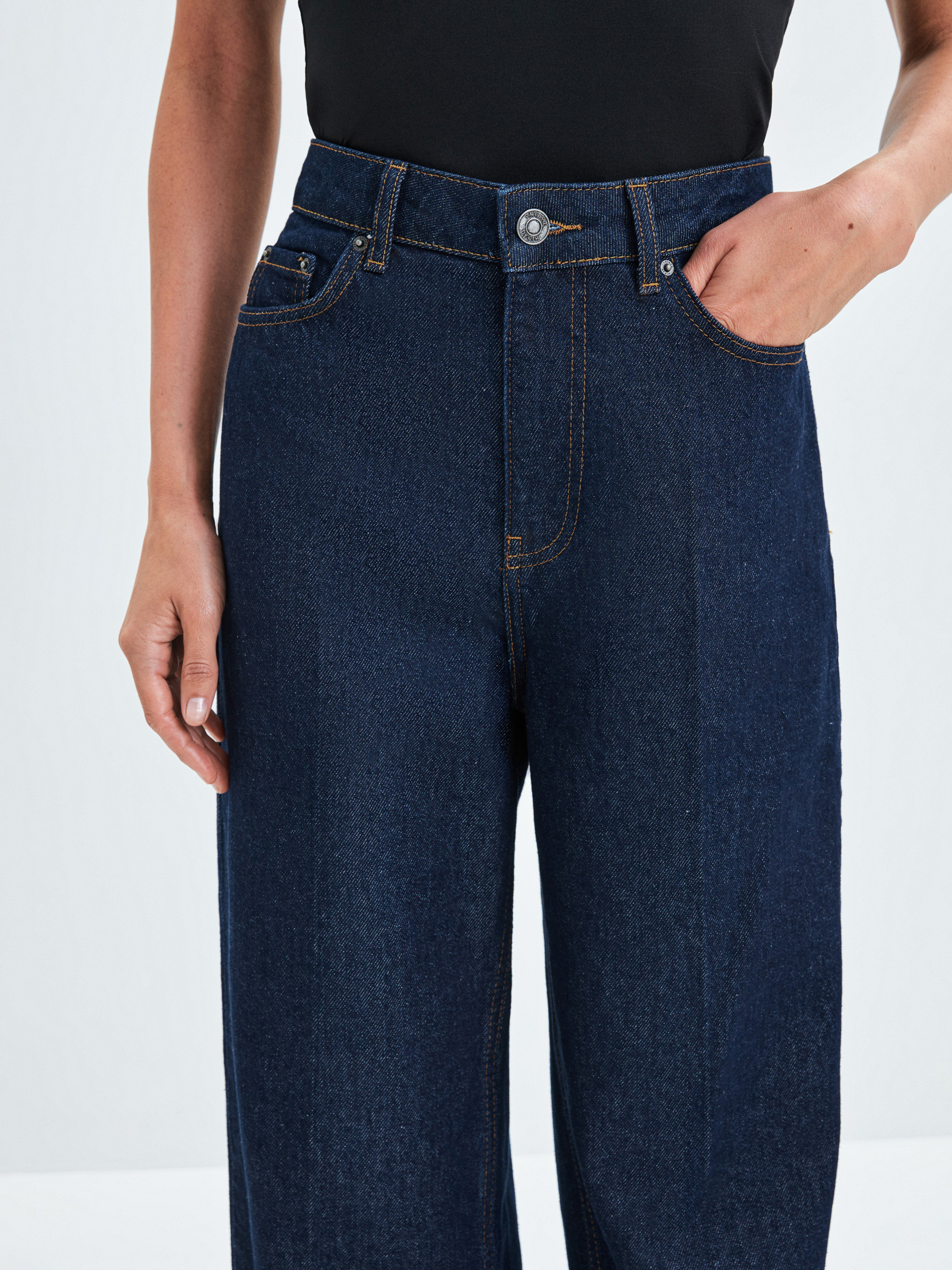 Параметры: Материал (деним): без эластана; Модель джинс: широкие; Модель джинс на английском: wide; Тип посадки: высокая