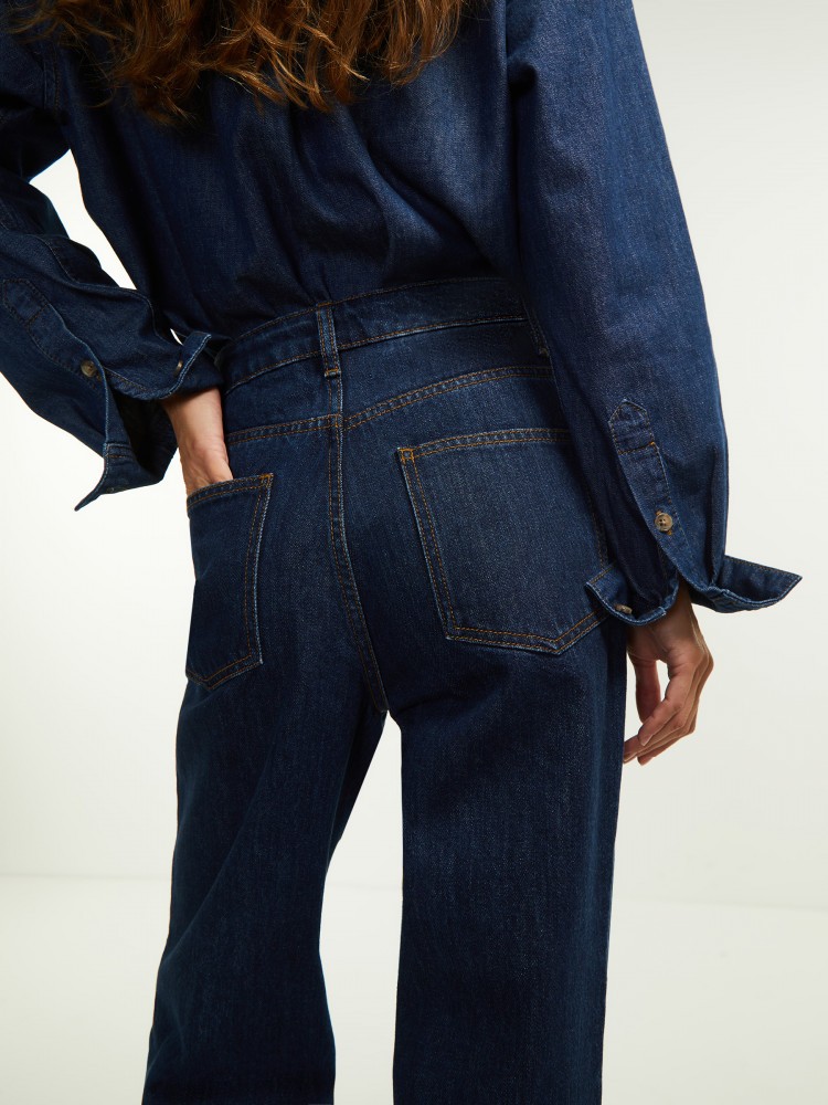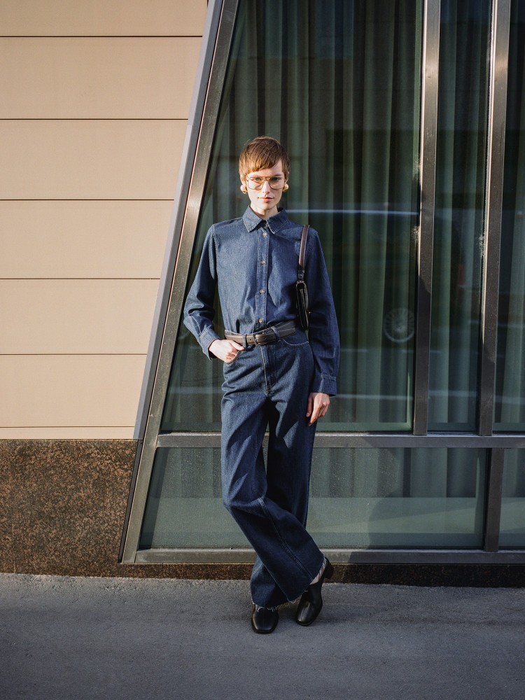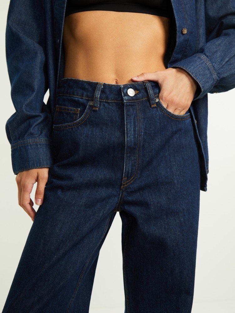 Широкие джинсы с высокой посадкой визуально удлиняют силуэт — этот эффект можно усилить, если надеть джинсы с босоножками на высоком каблуке. Для модели выбрали плотный деним (13,5 Oz) в оттенке Rinse: постепенно на нем будут проступать эффекты и естественные потертости, отражающие, как их любят носить.Сделано в Сербии.