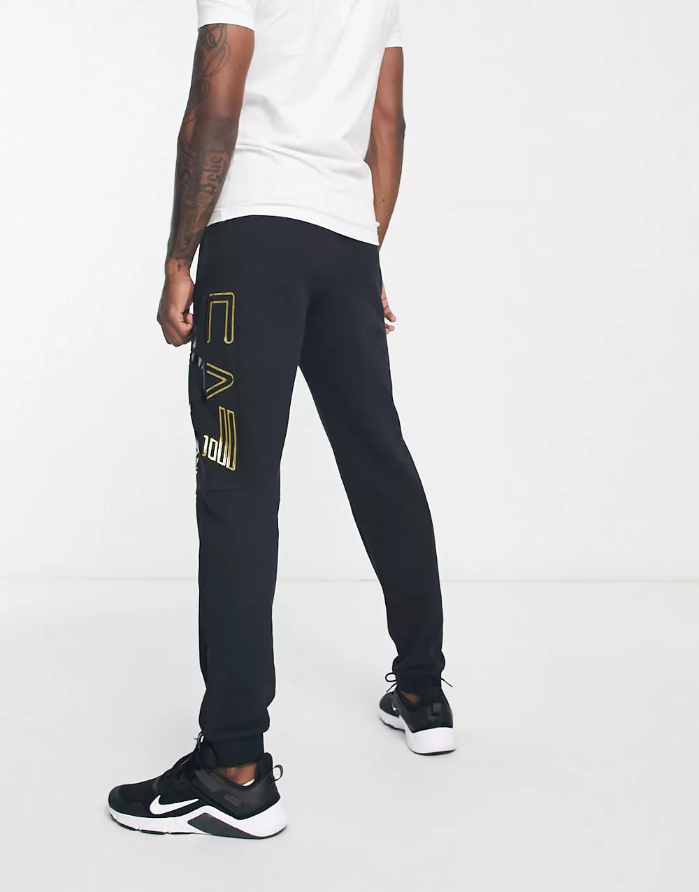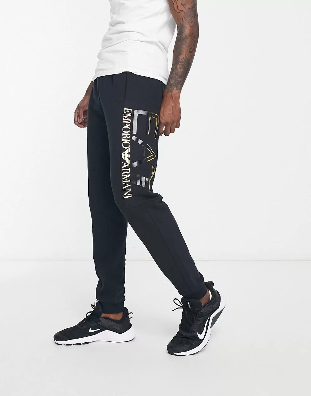 - Emporio Armani EA7 oversized logo joggers in black