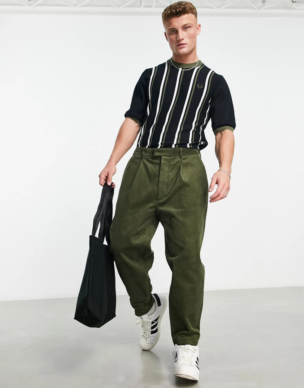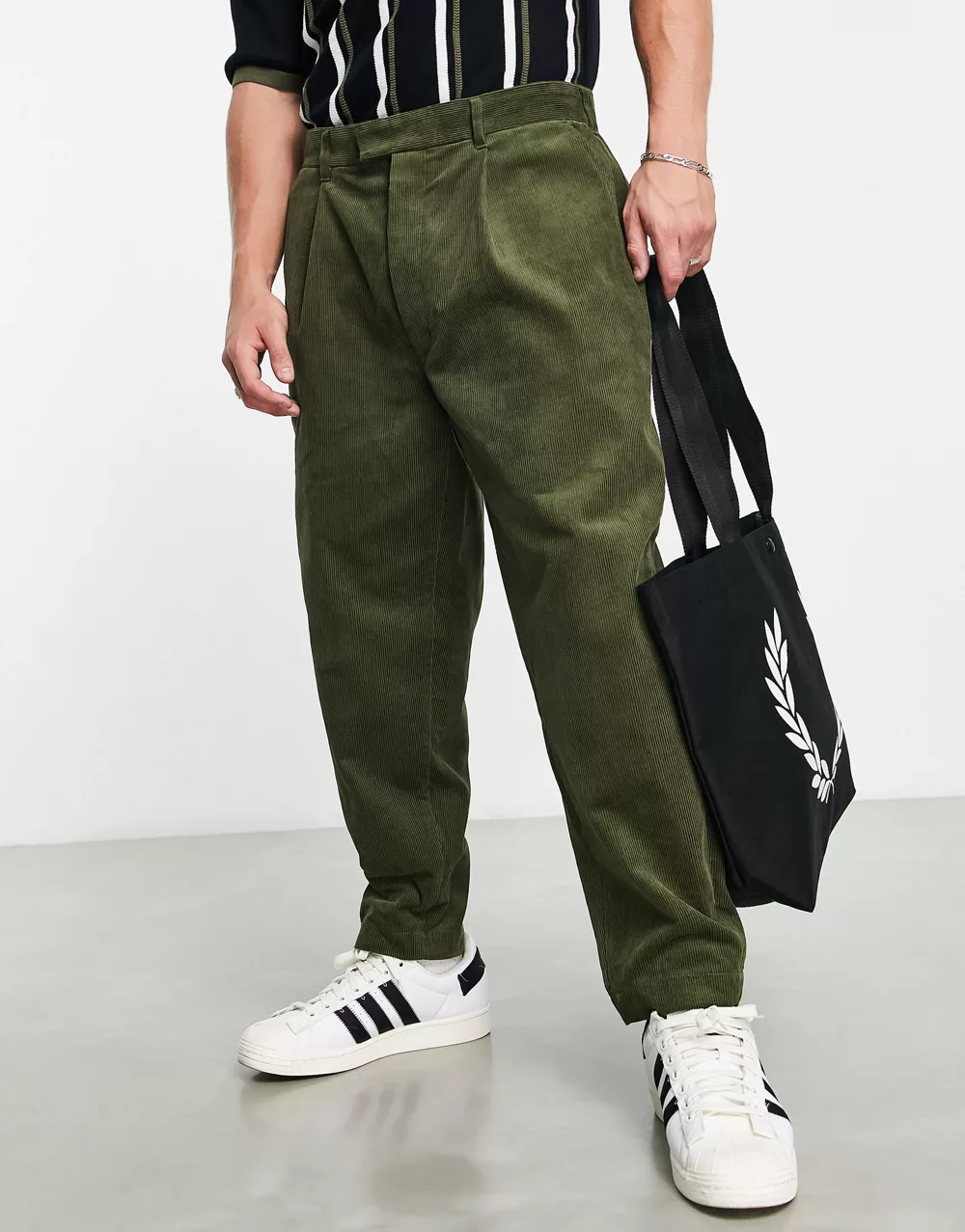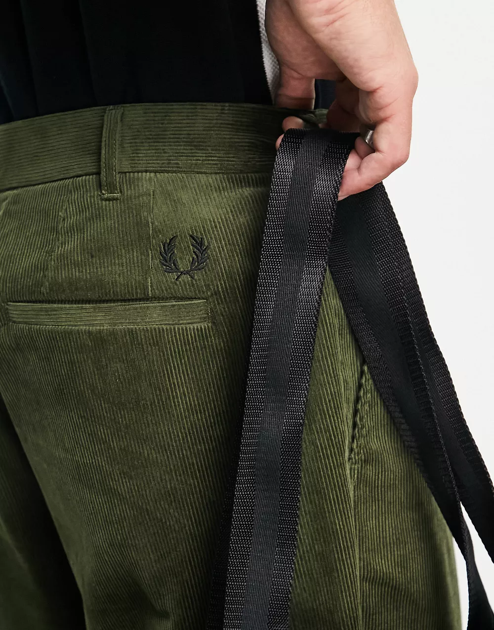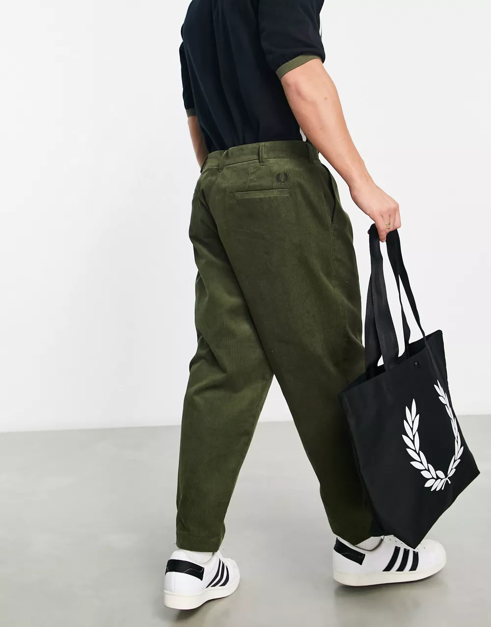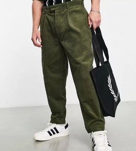- Fred Perry cropped cord tapered trousers in khaki