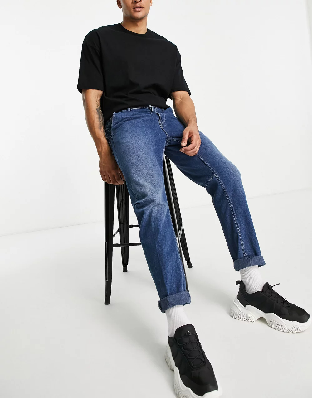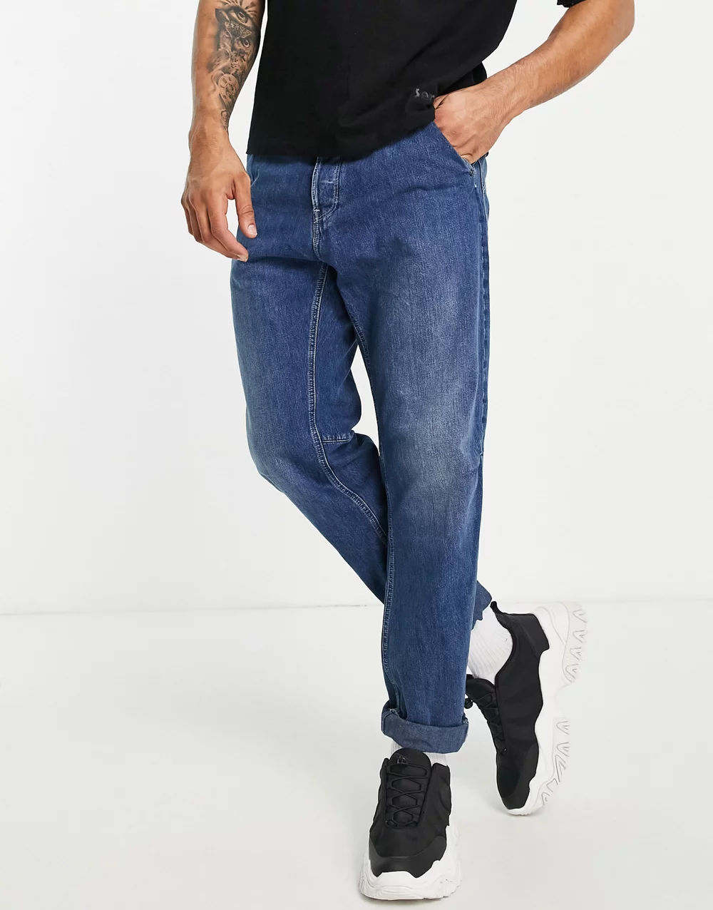 - G-Star Grip 3D Relaxed Tapered jeans in midwash blue