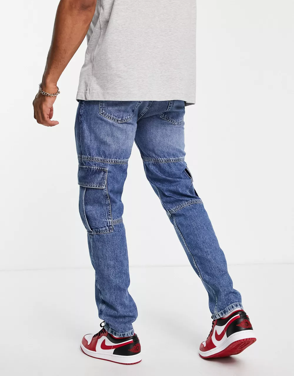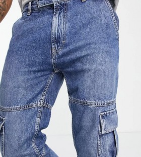 - HUGO 634/2 tapered fit cargo jeans in mid blue