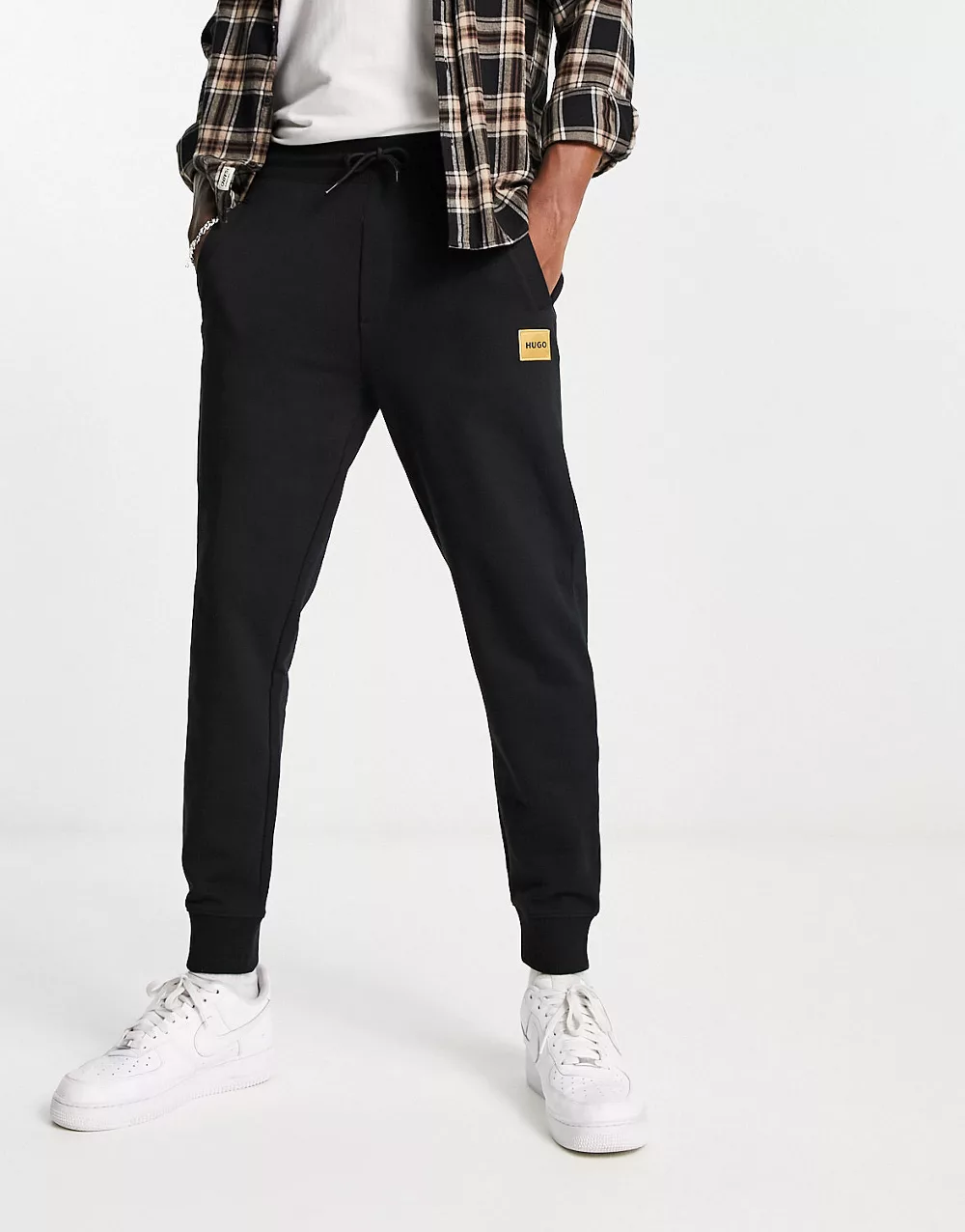 - HUGO Doak regular fit gold logo joggers in black