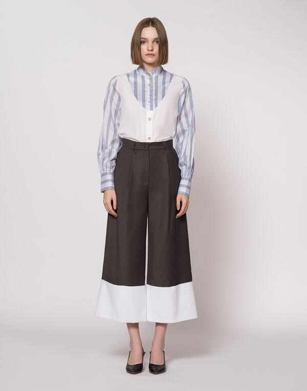 Шерстяные брюки кюлоты с широкими отложными манжетами из хлопка