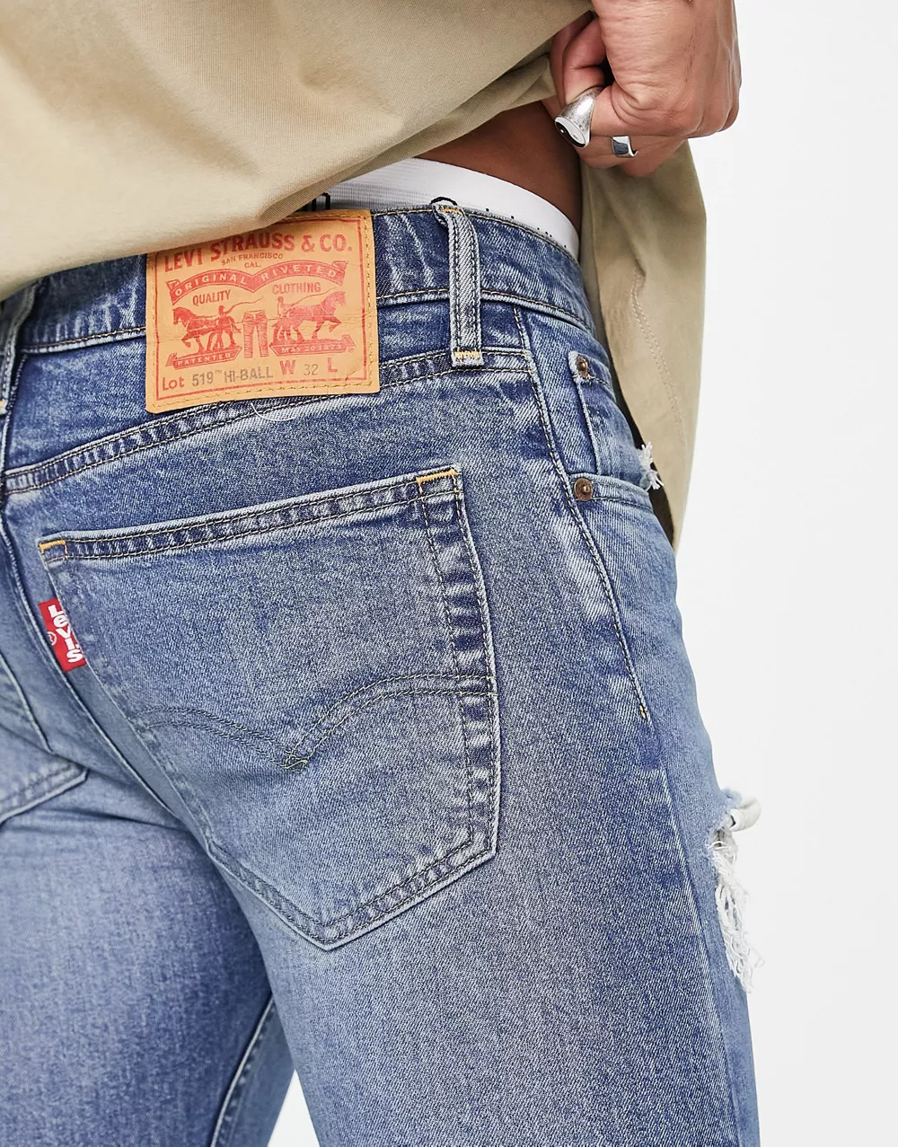 - Levi's 519 super skinny jeans in mid blue wash with distressing 2460487978-50