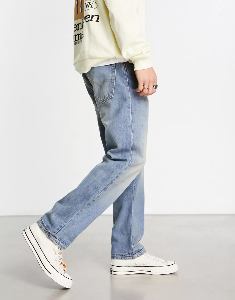 - Levi's 551z authentic straight fit jeans in vintage light blue wash with paint marks