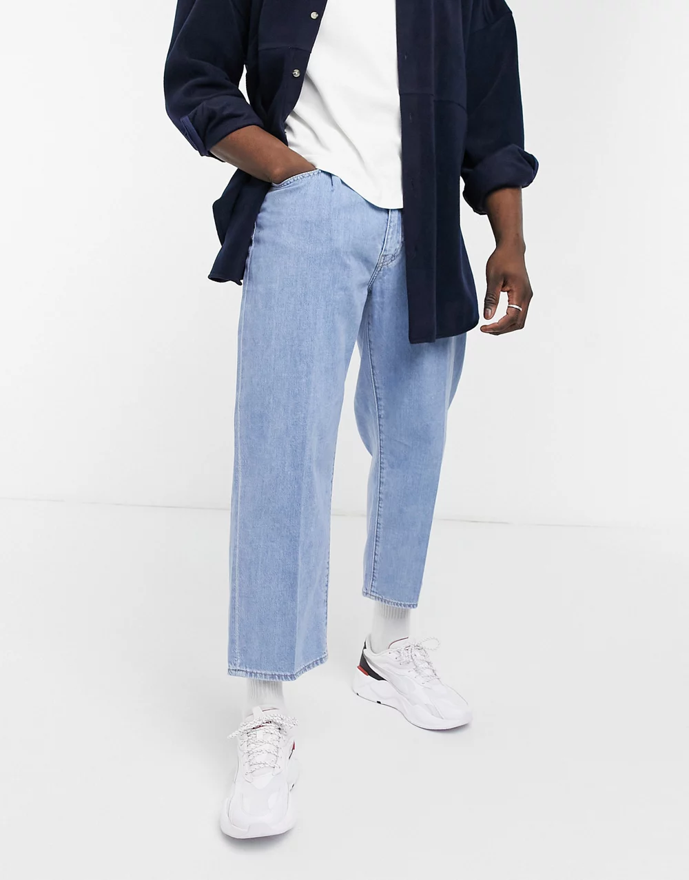 - Levi's stay loose pleated crop jeans in deadeye lightweight indigo