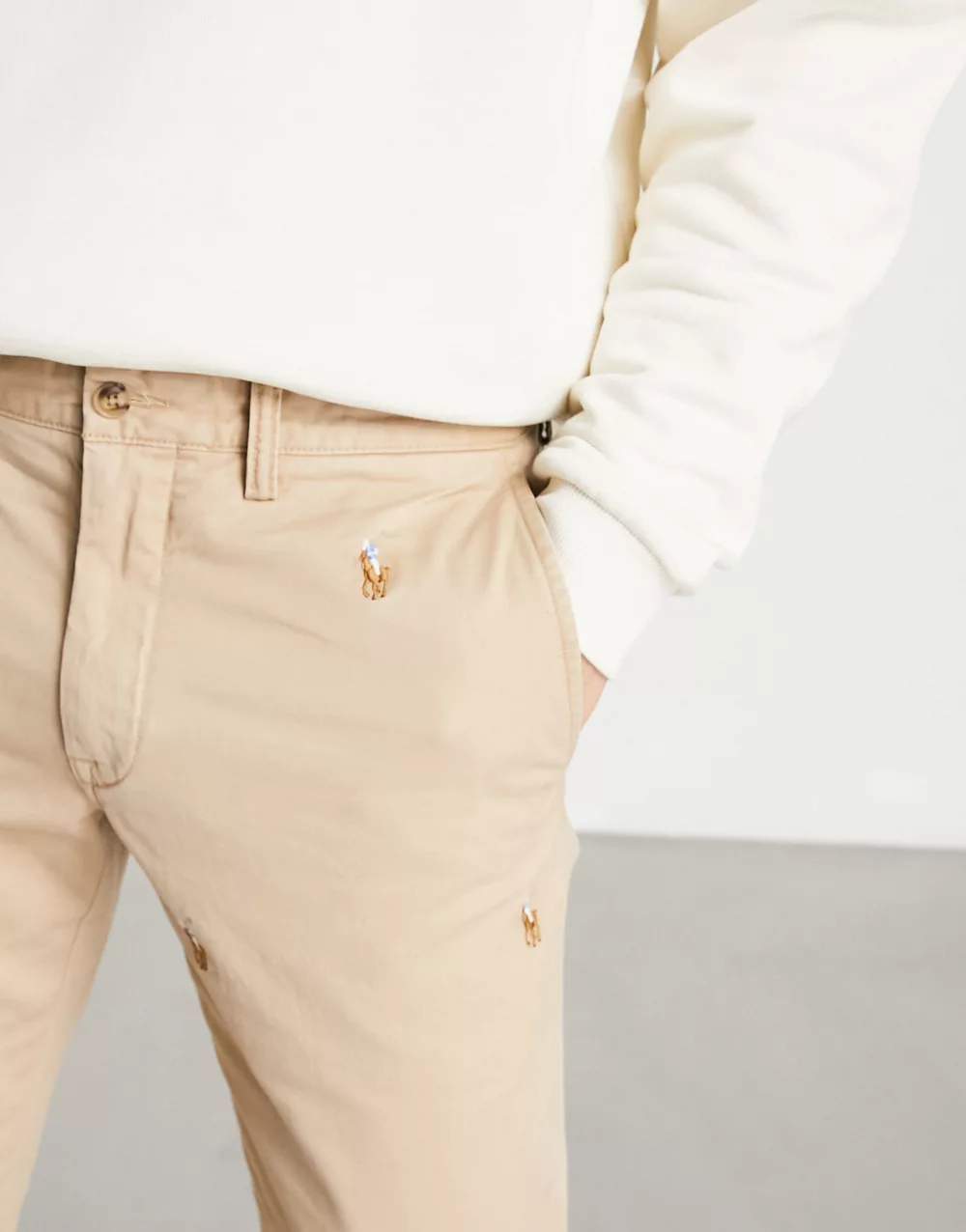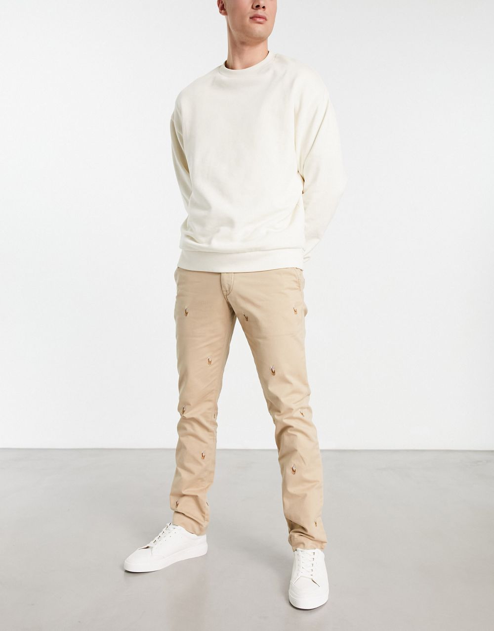 - Polo Ralph Lauren all over pony logo slim fit chinos in beige