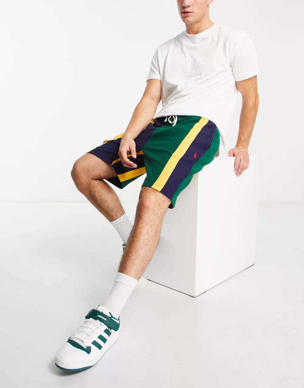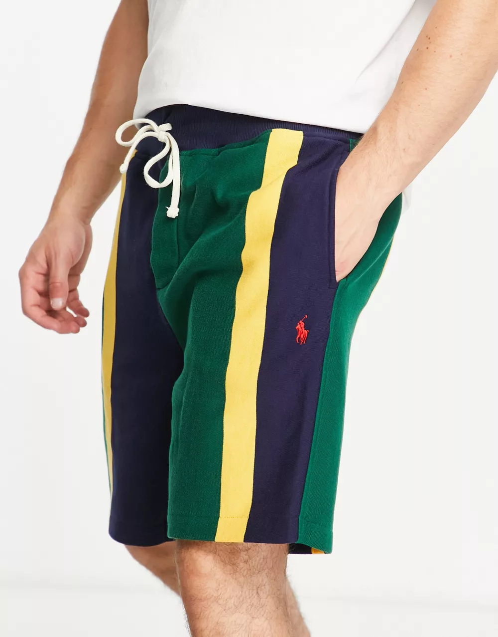 - Polo Ralph Lauren icon logo varsity stripe sweat shorts in green