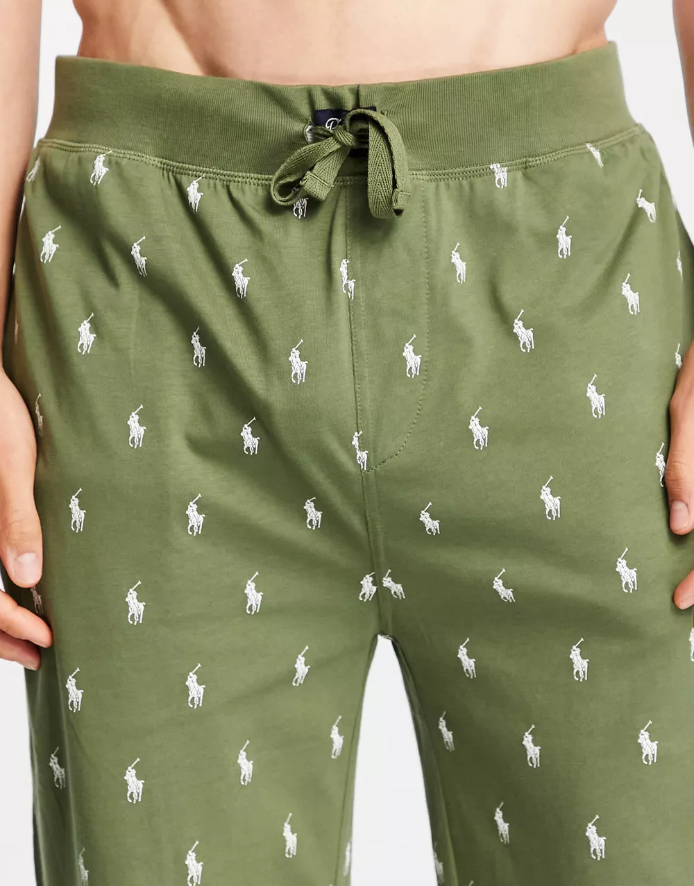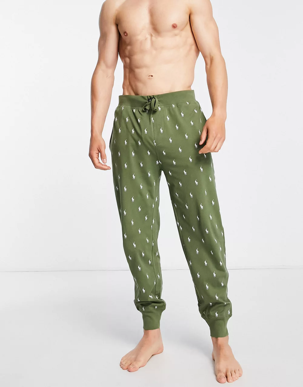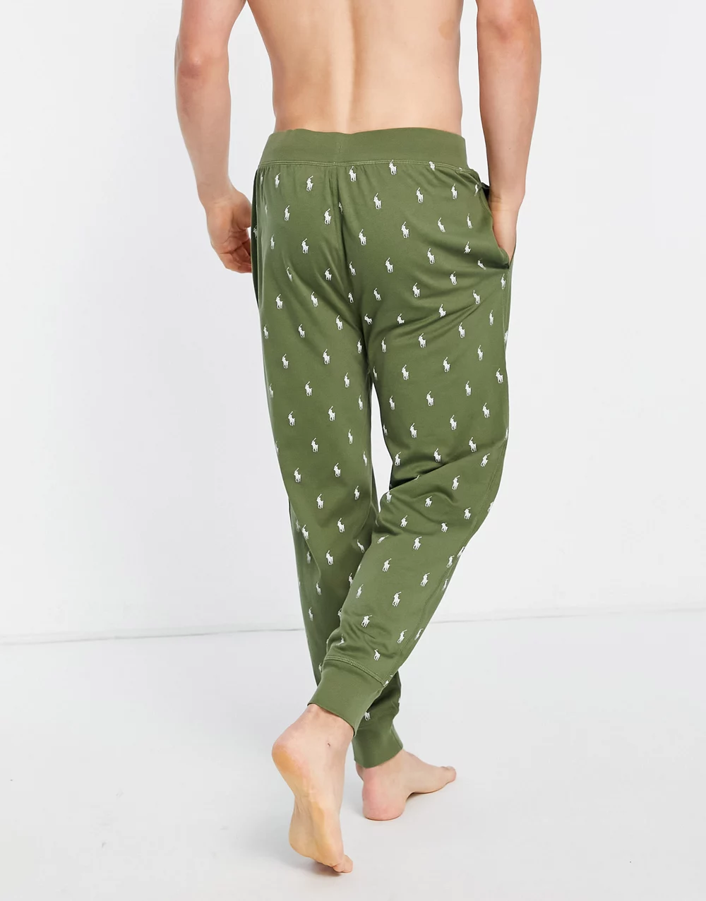 - Polo Ralph Lauren lounge joggers in olive green with all over pony logo