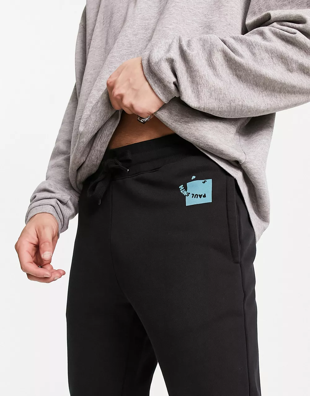 - PS Paul Smith joggers in black with happy 3 in a row scattered graphics