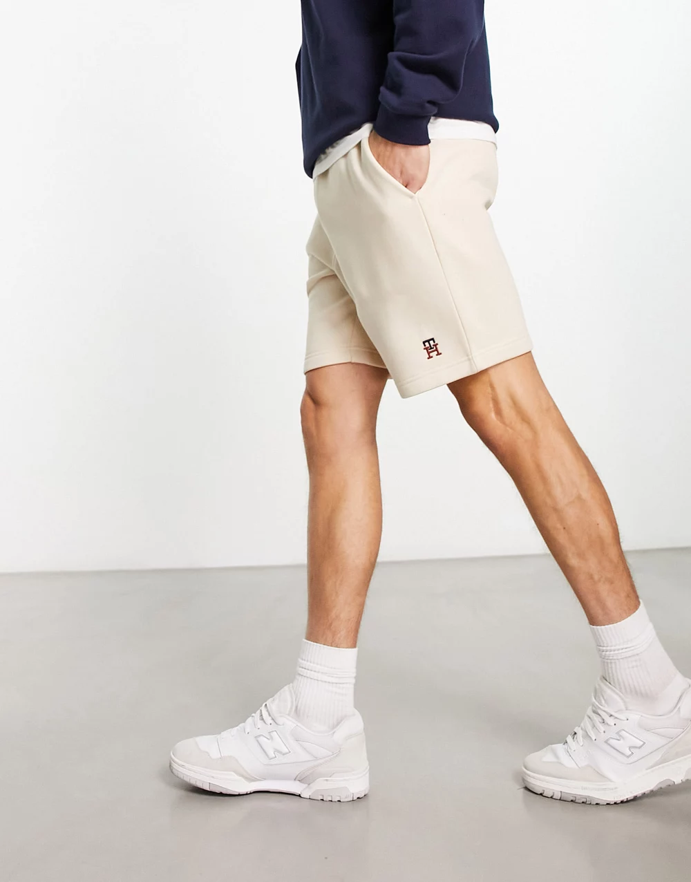 Tommy Hilfiger square logo sweat shorts in tan