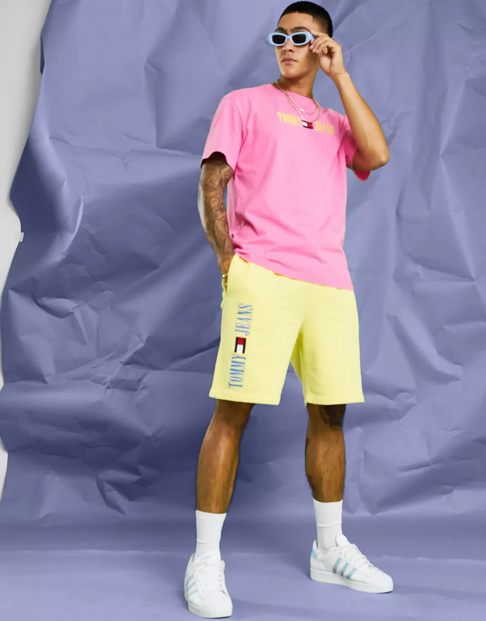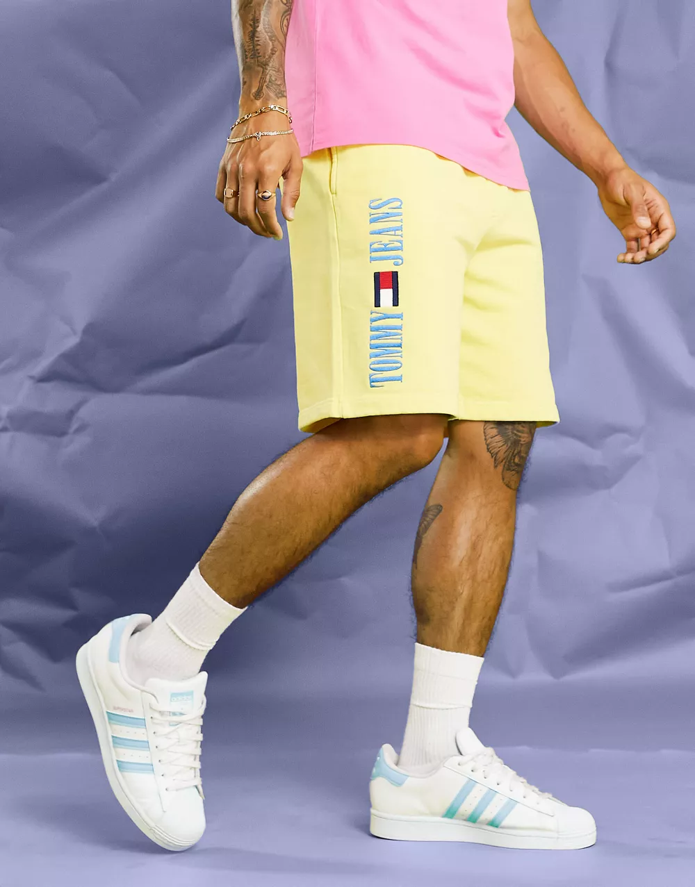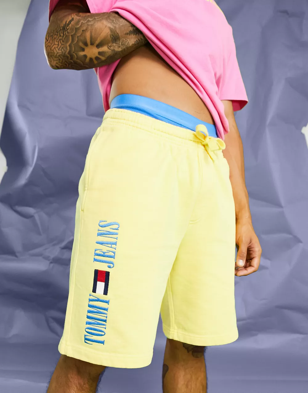 - Tommy Jeans acid capsule cotton blend side logo sweat shorts in yellow
