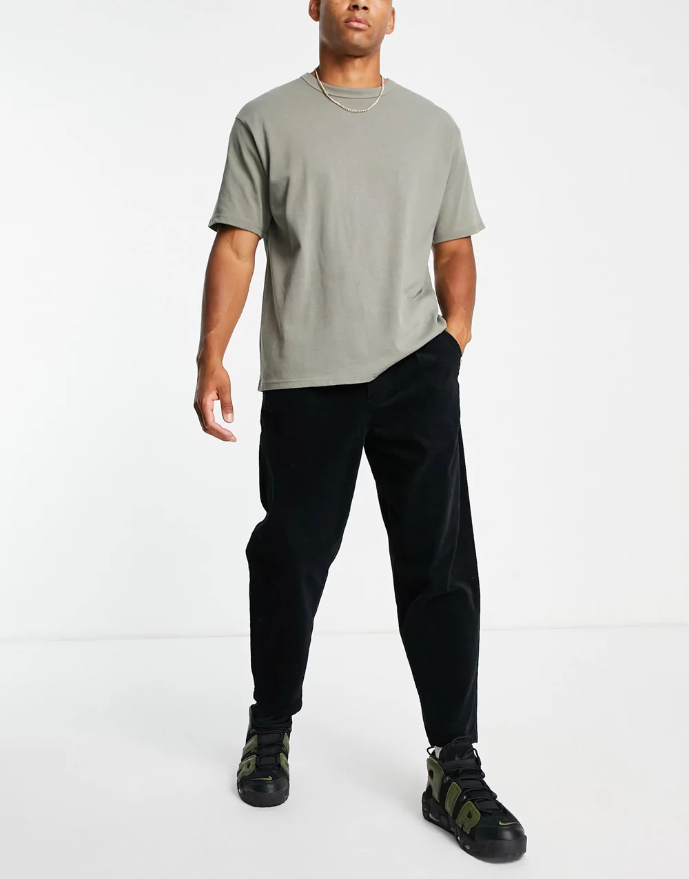 - Tommy Jeans cotton blend bax pleated tapered cord chinos in black