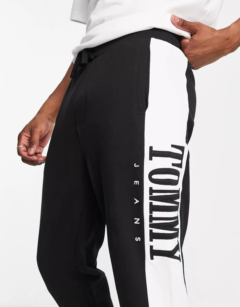 - Tommy Jeans serif logo colourblock cuffed joggers in black