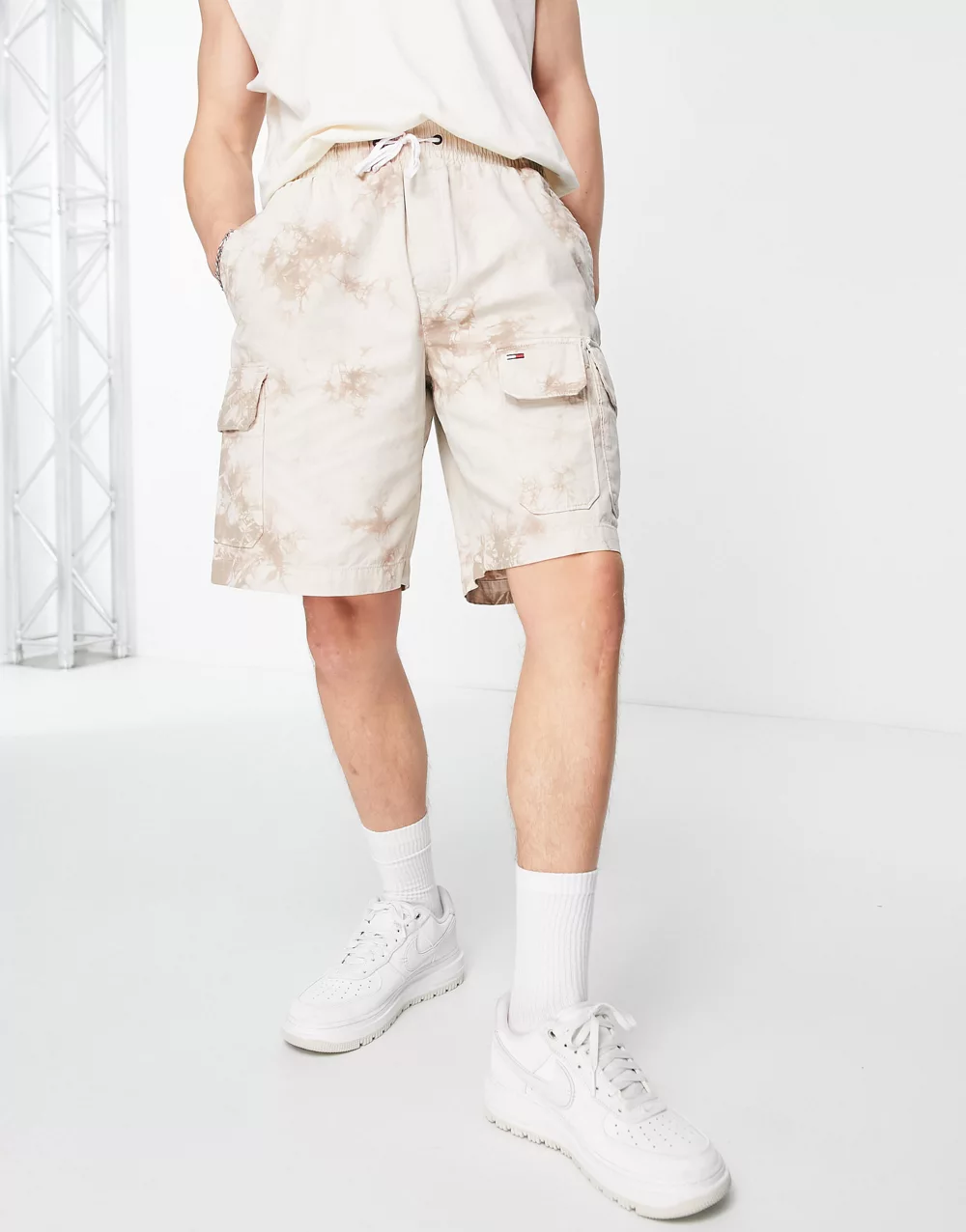 - Tommy Jeans x ASOS exclusive collegiate capsule tie dye belted twill cargo shorts in multi